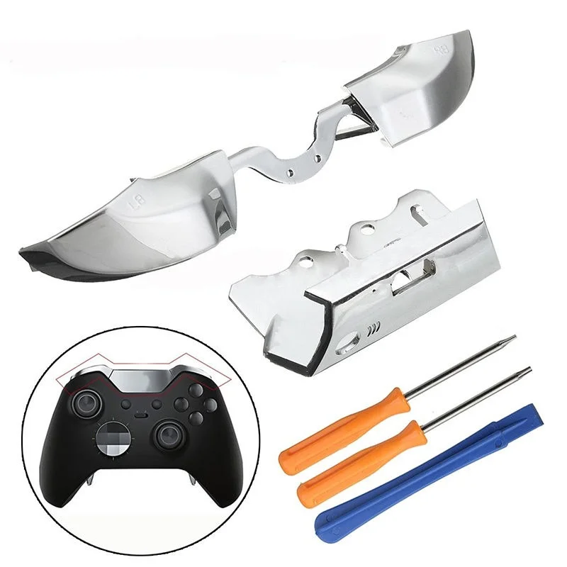 Запасные части для контроллера XBOX ONE Elite, сменные кнопки LB RB, серебряные бамперы, ТРИГГЕРНАЯ средняя накладка, отвертка T8 T6