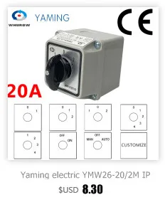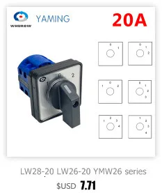 LW26-20 Электрический 23467 позиционный серебристый контакт 20A 660 В 3-полюсный поворотный переключатель кулачковый переключатель LW28-20 YMW26-203