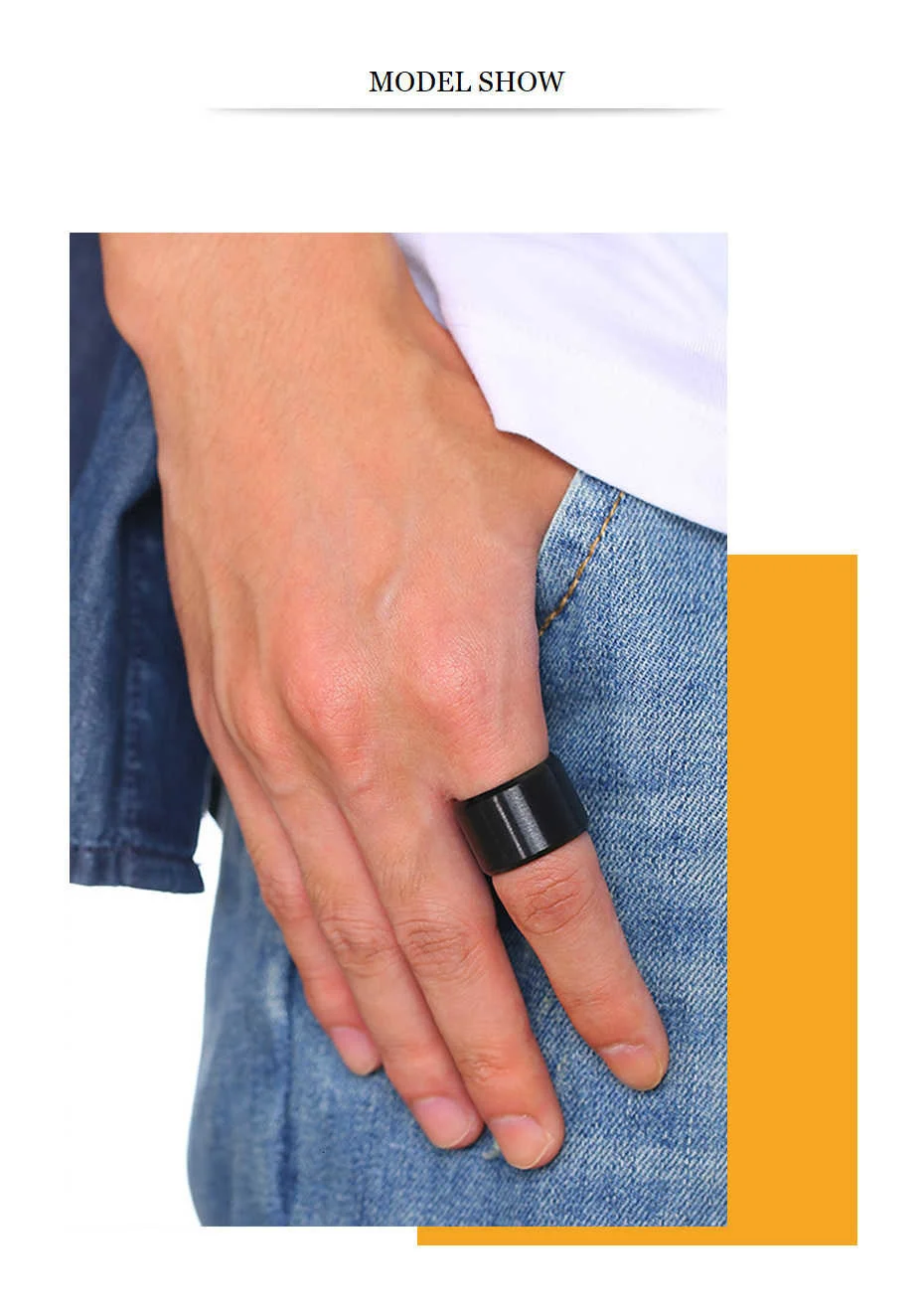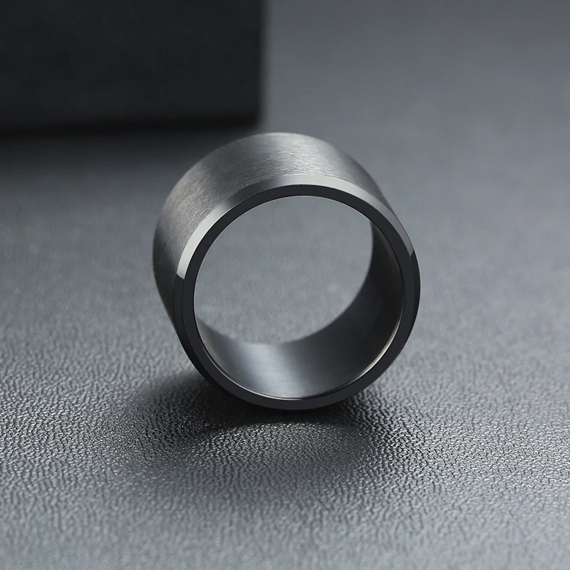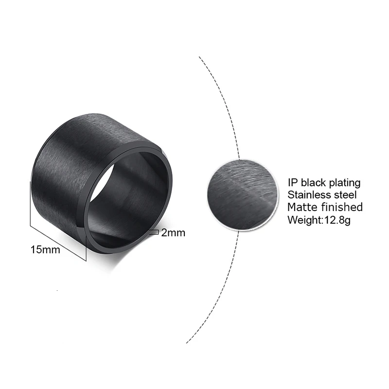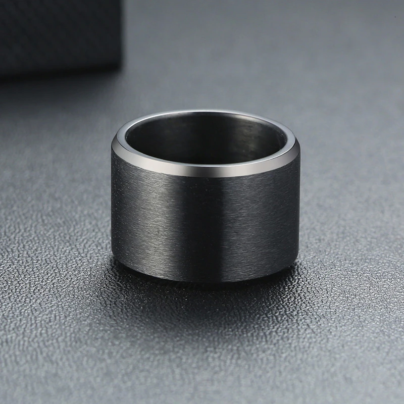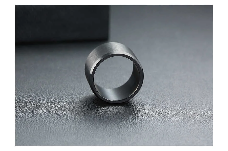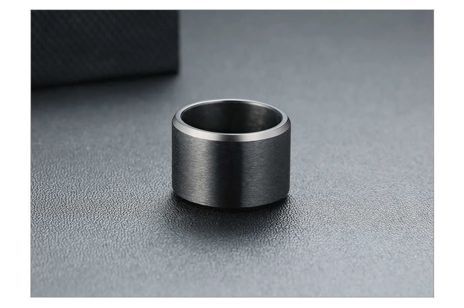 Мужское кольцо 15 мм очень широкое черное кольцо из нержавеющей ста...