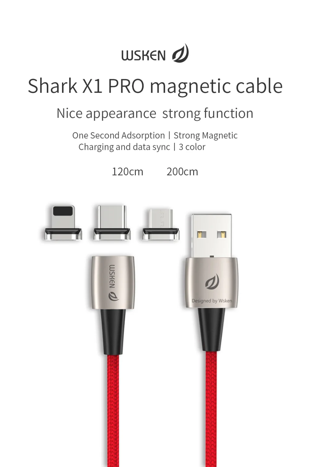 Магнитный зарядный кабель WSKEN для iPhone, кабели Micro USB, USB Type-C 3A, магнитный кабель для Samsung Type-C, кабель USB C