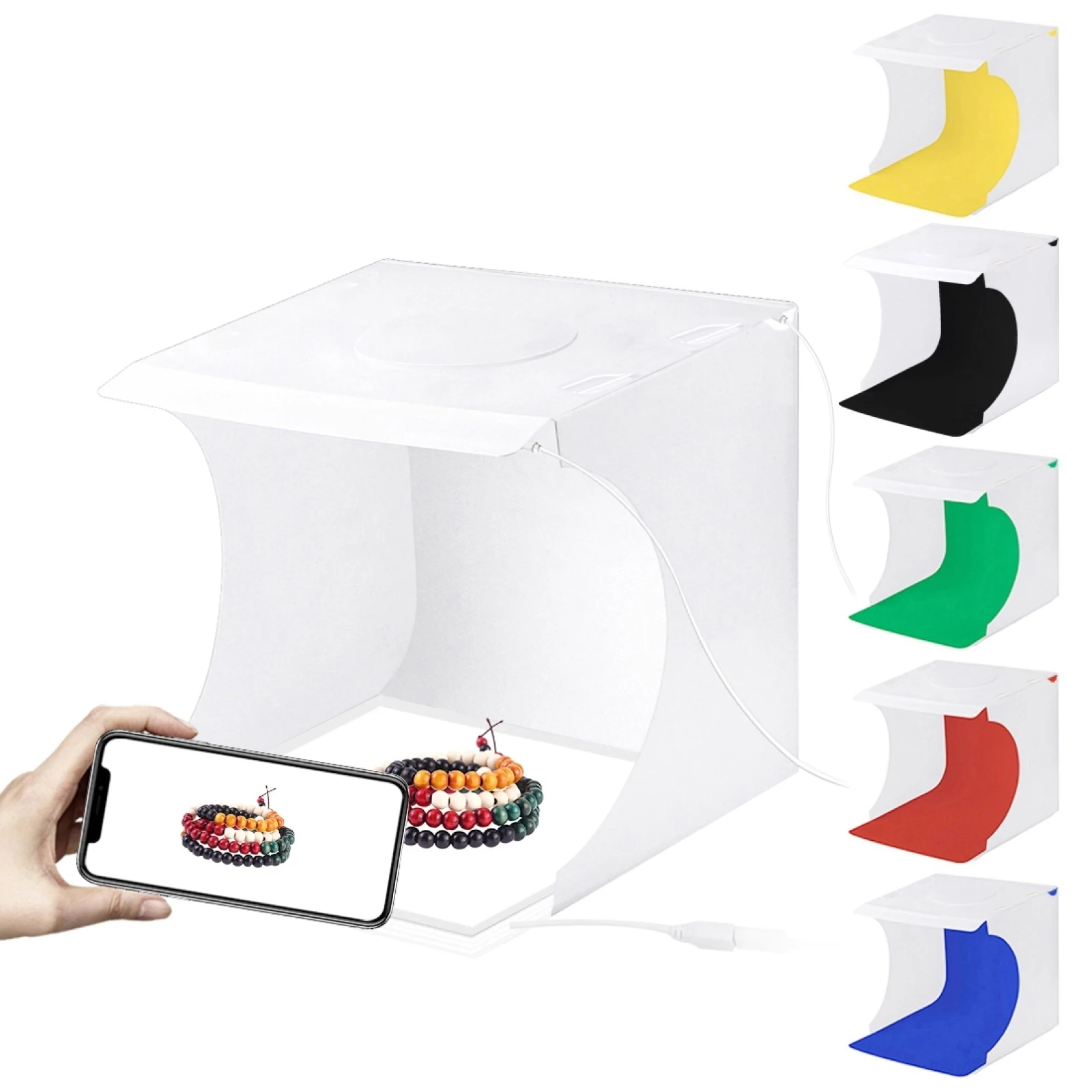 Студийная коробка1. Светильник для фотосъемки предназначен для небольших предметов для любителей фотографии, ремесленников, художников, продавцов etsy и других онлайн-продавцов, профессионалов и клиентов по рекламе продукта.2. Светильник-бокс-студия позволяет быстро и легко снимать мелкие товары, такие как ювелирные изделия, аксессуары, игрушки, часы, гаджеты и другие предметы.3. Соберите свою собственную фотостудию в любом месте в течение нескольких минут, вы можете развернуть этот светодиодный лайтбокс-студия и разместить его на любой поверхности, чтобы получить идеальный фон для фотосъемки небольших предметов, фотографирования продуктов.4. Портативная складная конструкция магнитной цепи, более удобная в установке и переноске, Встроенный светодиодный светильник, обеспечивающий средний Светильник, предотвращает появление теней и отражений на фотографиях.5. Источник питания: 5 В, 1 А (не поддерживает выходное напряжение USB более 5 В, например, быструю зарядку).Светильник без тени1. Этот бестеневой светильник для фото освещение кабины светильник коробка устраняет проблемы фотографирования теней, заточить контур и края продуктов и значительно сократить время потребляя редактирования фотографий.2. Идеально подходит для фотографирования коммерческих объектов для ювелирных изделий, косметики, масштабных моделей, художественных работ, стеклянной посуды, электронных гаджетов и модных аксессуаров и т. д.3. Ультра-тонкий и яркий, подсветка ровная, супер яркая и без мерцания.4. С портом micro USB, питание от USB 5 в постоянного тока, вы можете легко получить источник питания от компьютера или банка питания через usb-кабель.5. Эффективная площадь: 20*20 см.Список посылка1. Основная студийная коробка (с 1 / 2 светодиодный панелью s, 20 светодиодный s в каждой панели или кольце(64 светодиода)Светодиодный панель) x 12. Мягкая сумка x 13. Черные фоны x 14. Белые фоны x 15. Желтые фоны x 16. Красные фоны x 17. Синие фоны x 18. Зеленые фоны x 19. 2 в 1 кабель Micro USB x 110. Бестеневой светильник-панель лампы x 111. Кабель Micro USB x 112. Руководство пользователя x 113. Цветная посылка x 1