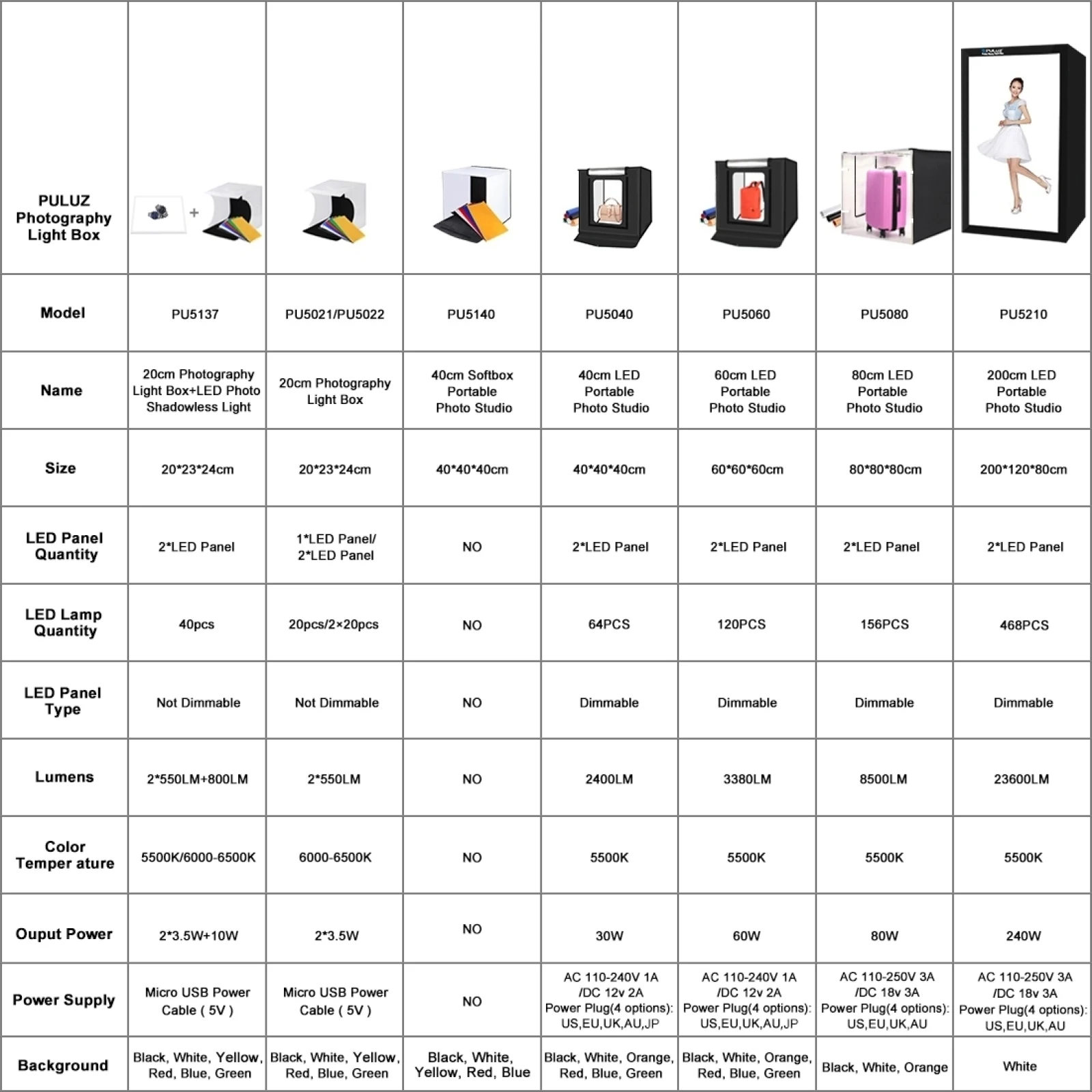 Световой короб для мини-студии PULUZ, 20 см, светодиодный, студийная панель, тент для фотосъемки, 6 фонов, бестеневой комплект лайтбоксов, софтбокс для фотосъемки