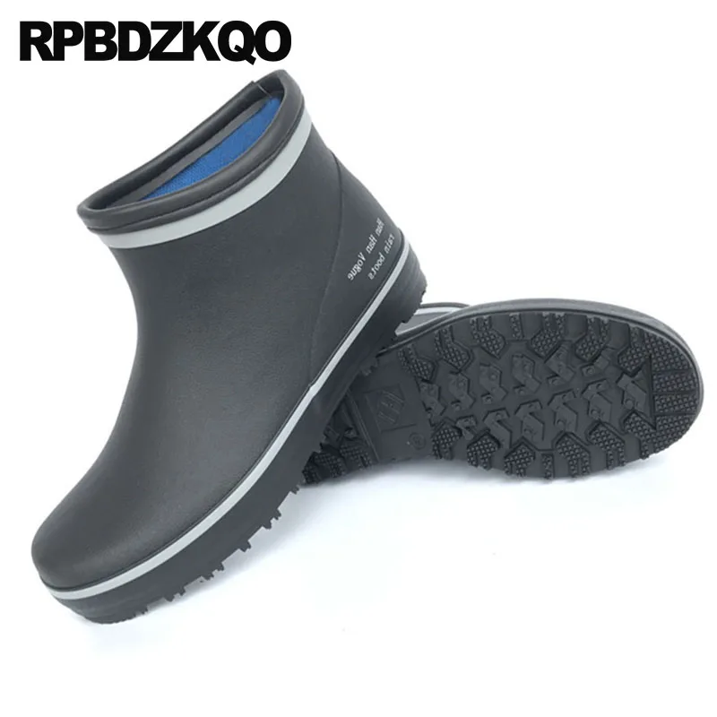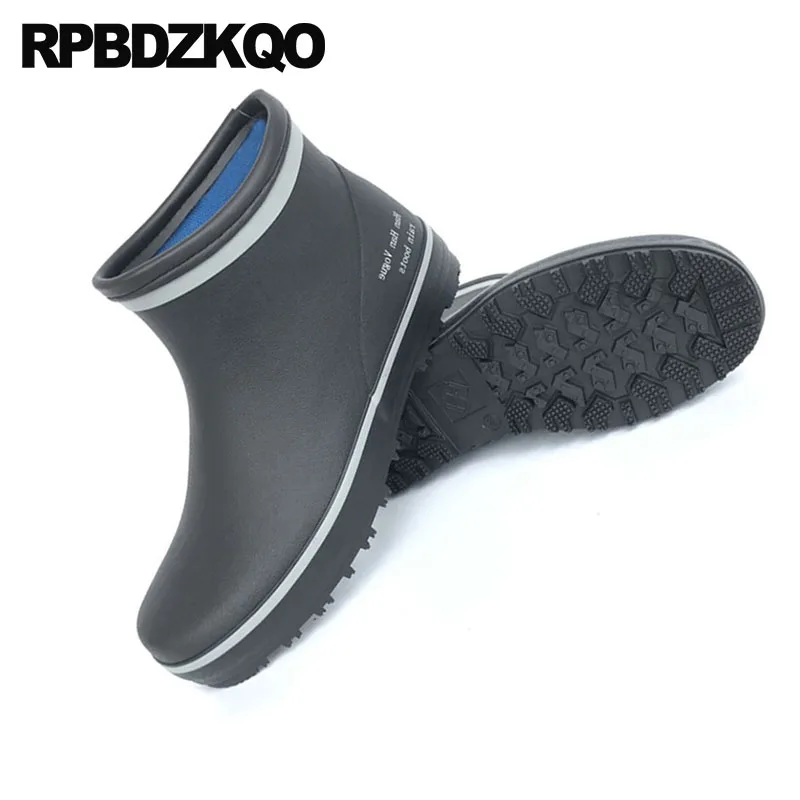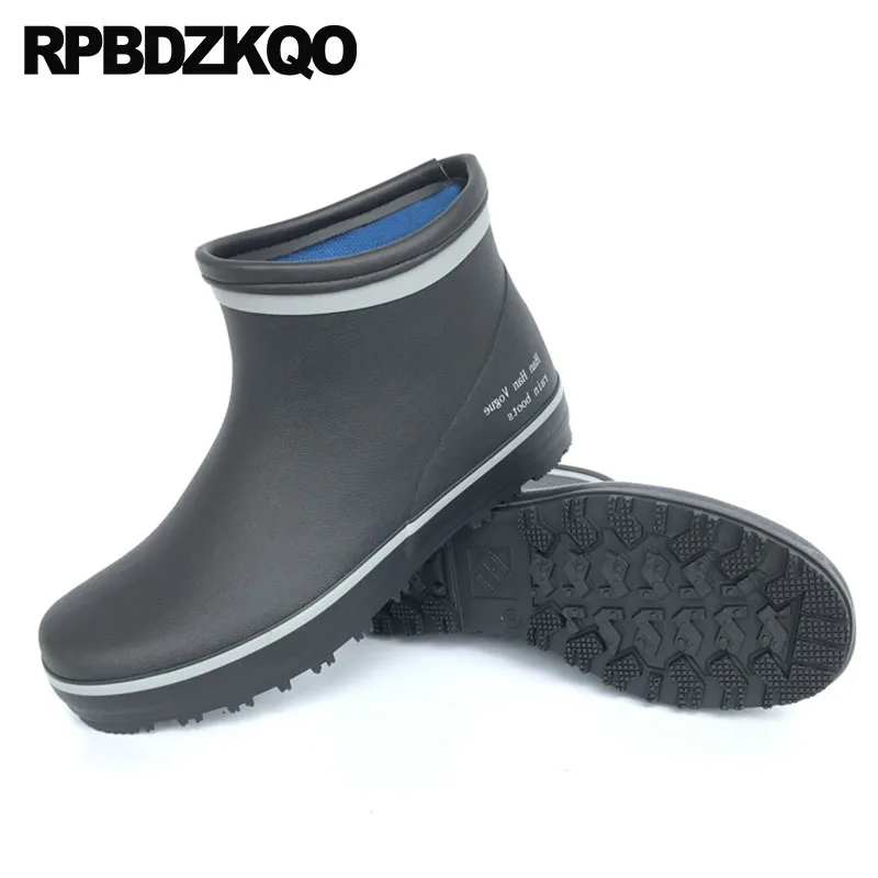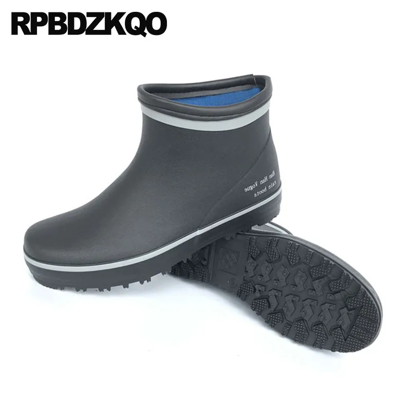 обувь туфли водонепроницаемый батильоны черный осень повседневная плоские 2018 резиновые сапоги для рыбалки мужская галоши Плюс размер короткие ботильоны слипоны пвх мода удобные удобная высокие сверху