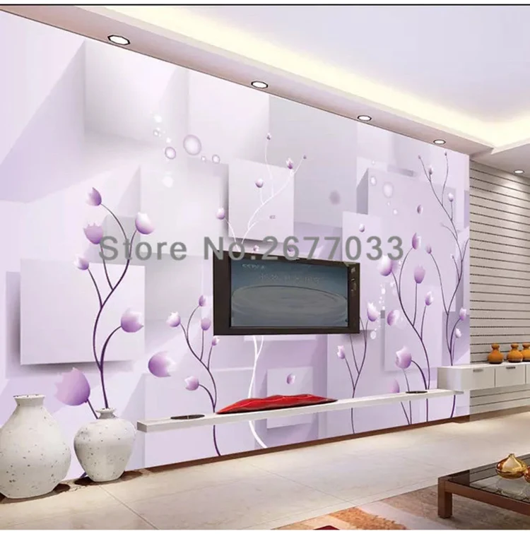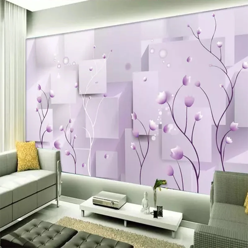 3D обои, современные фиолетовые Романтические цветы, настенная живопись для гостиной, ТВ, дивана, фоновая ткань, украшение для дома
