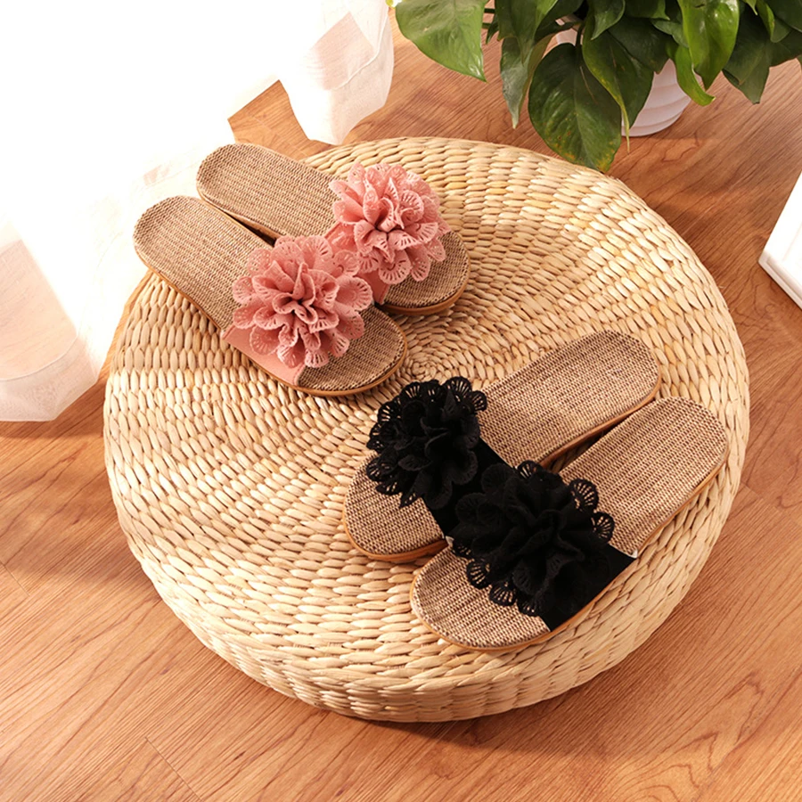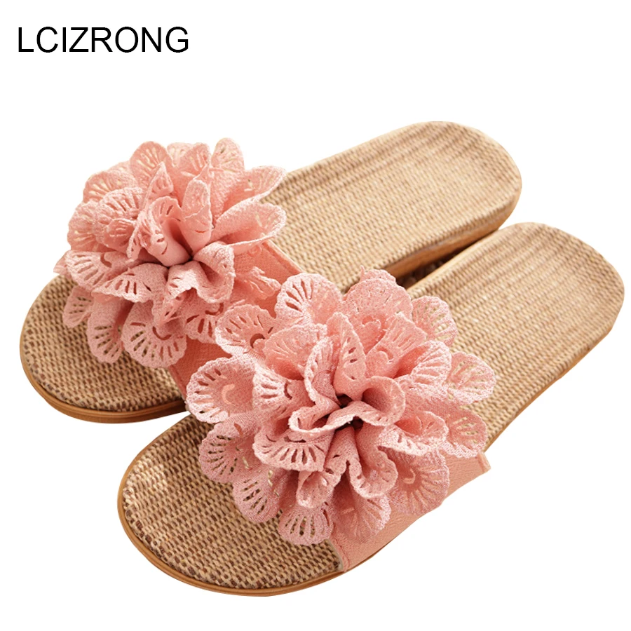 Шлепанцы LCIZRONG женские льняные домашние, удобные пляжные тапочки с цветочным принтом, без застежки, Нескользящие, для спальни, на осень