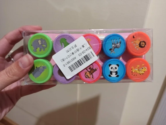 Kolorowe pieczątki dobrze spełniają swoją funkcję. mogłyby być lepiej zapakowane. Pudełko było zdeformowane, ale zawartość w dobrym stanie
