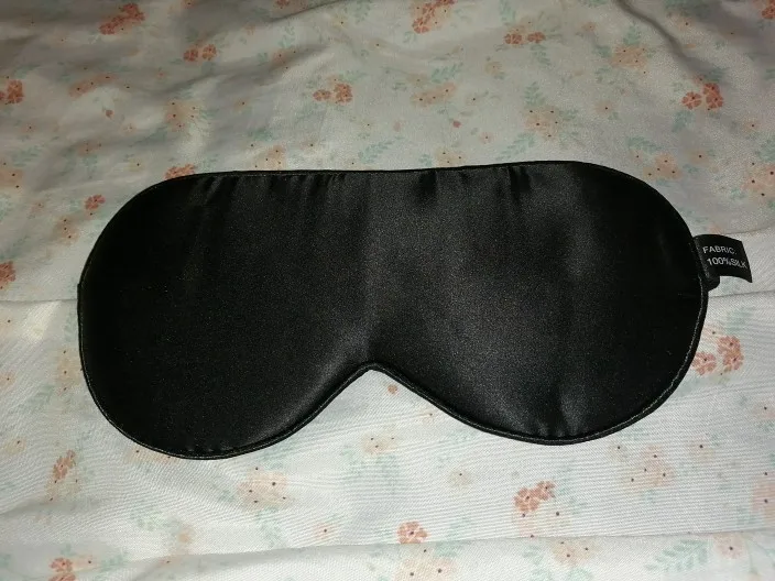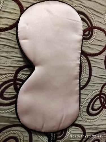 Товар понравился. Очень приятна ткань при прикосновении к лицу. Регулируемая резинка, написано натуральный 100% шёлк. Свет не проникает. Очень рекомендую. Доставка 2 недели до Рязани. Покупкой довольна.