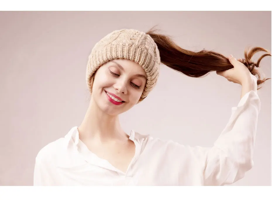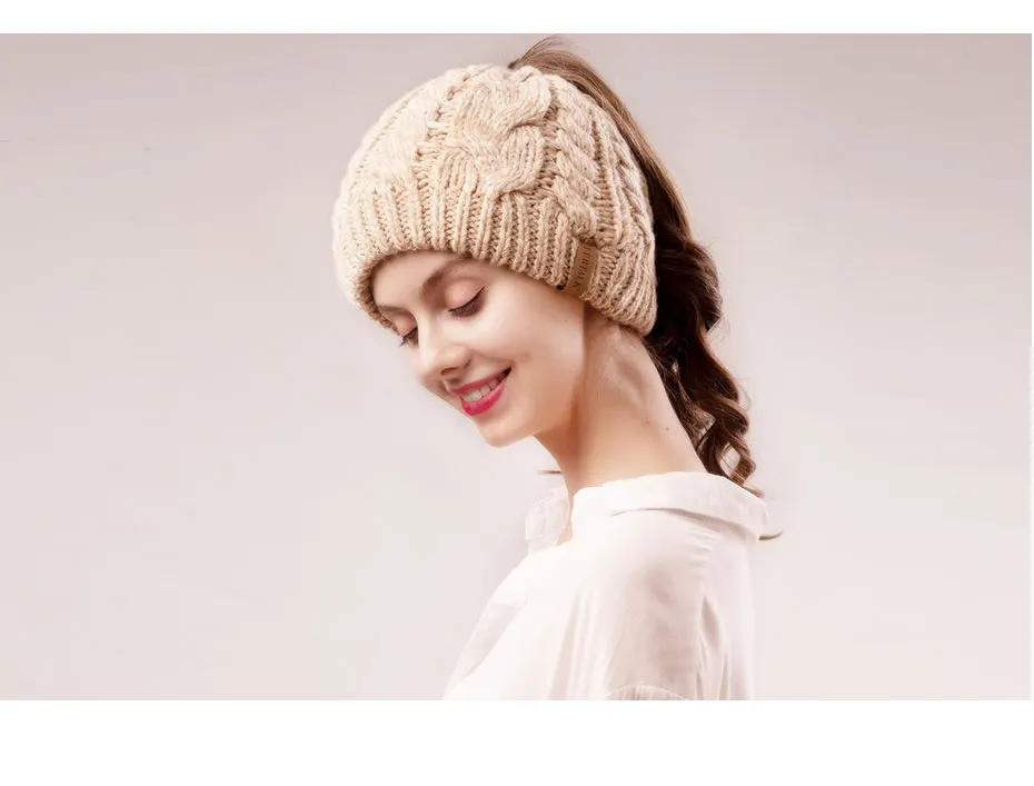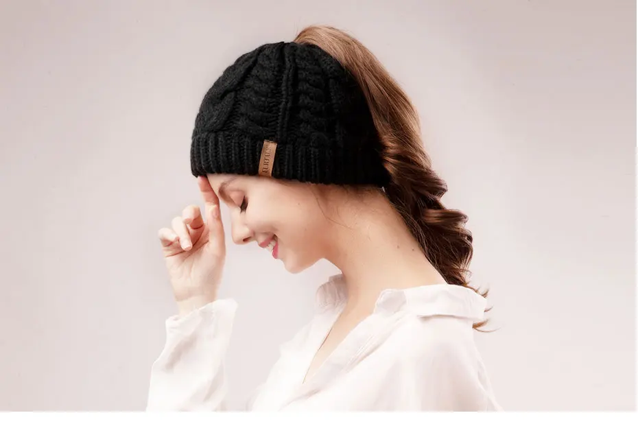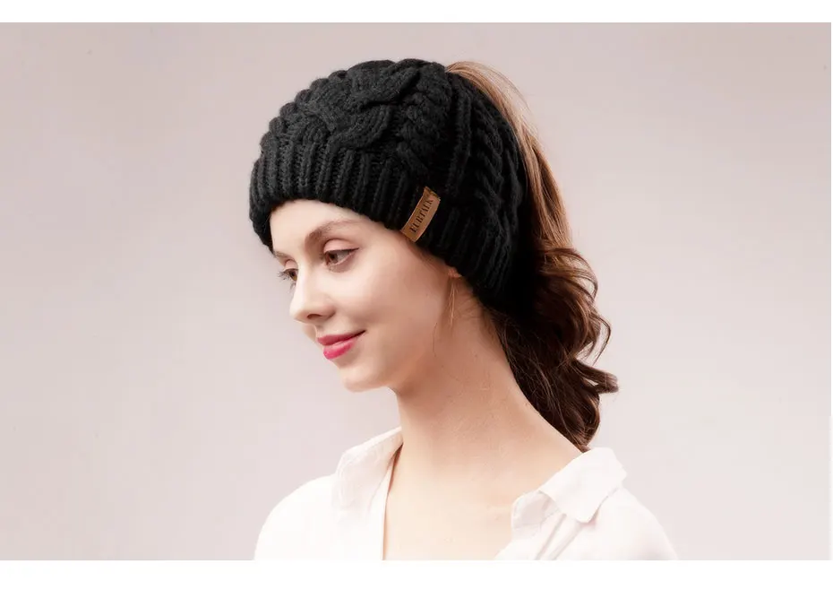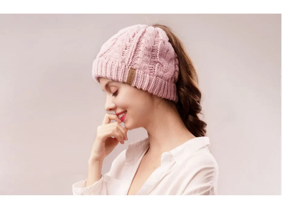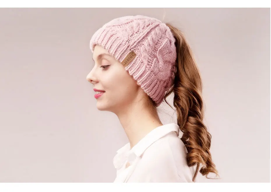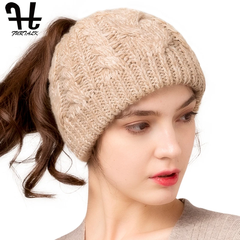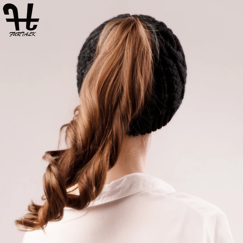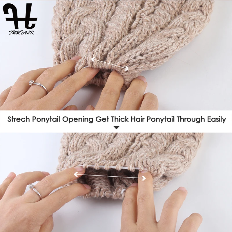 Шапка-бини с хвостиком FURTALK, женская зимняя вязаная Лыжная шапка с отверстием для хвоста