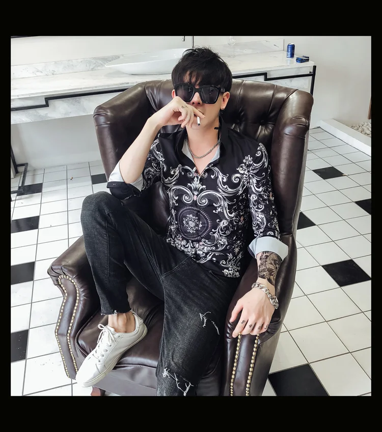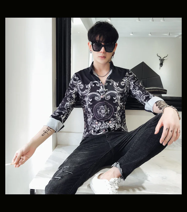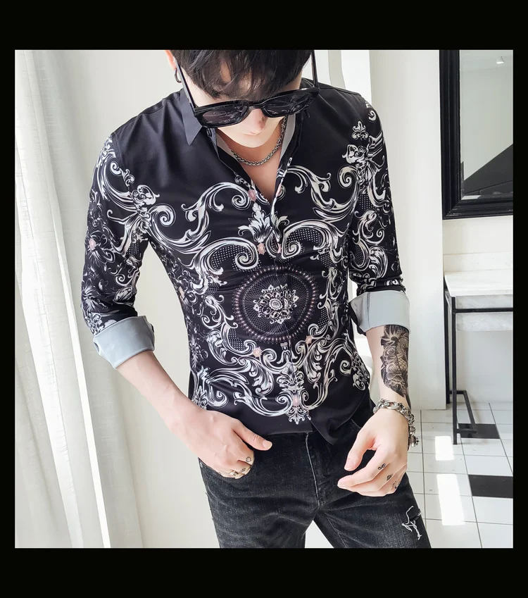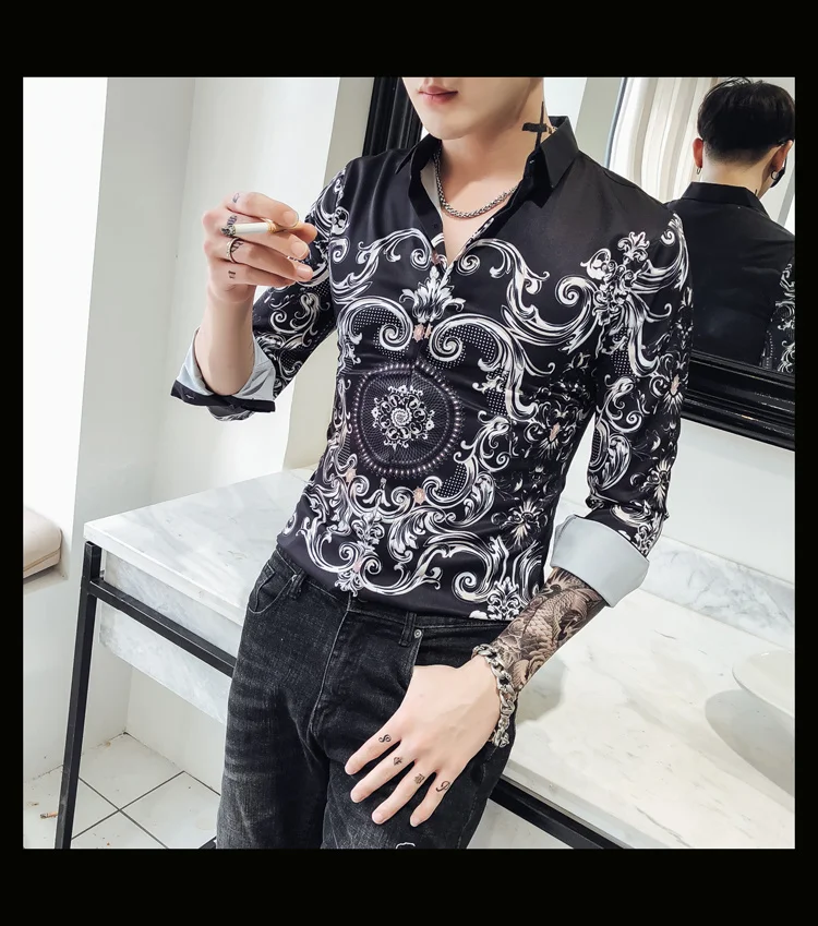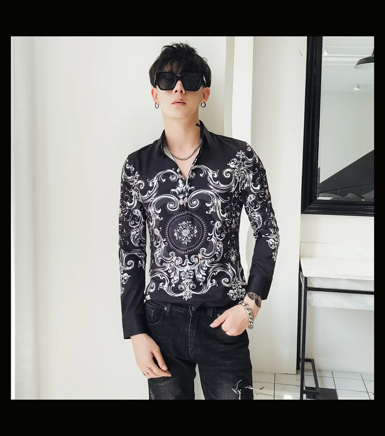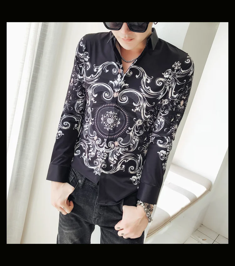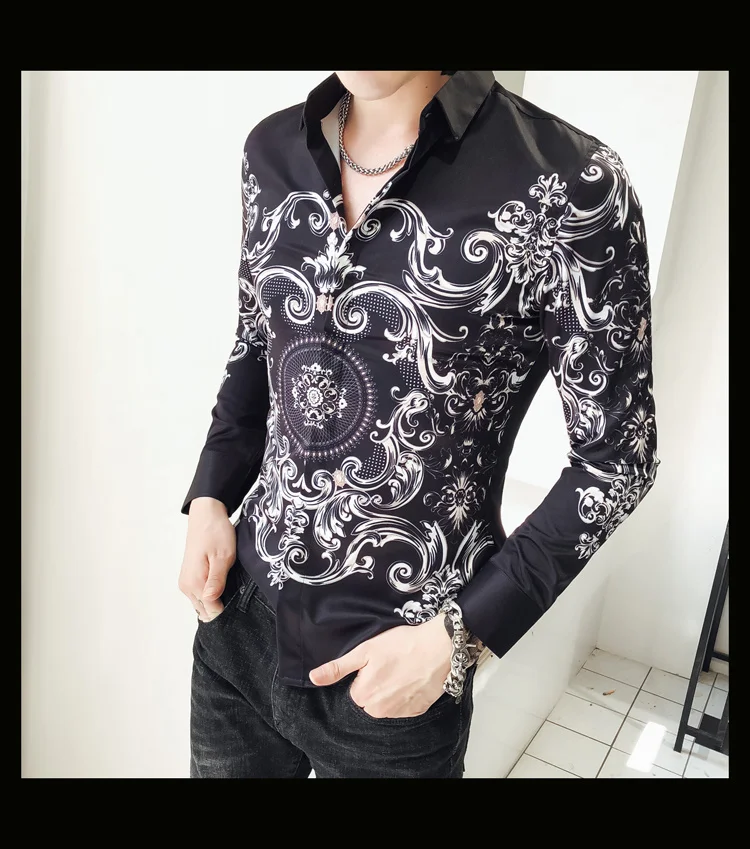 Рубашка барокко Мужская, с принтом пейсли, приталенная, осень 2018