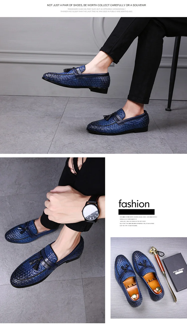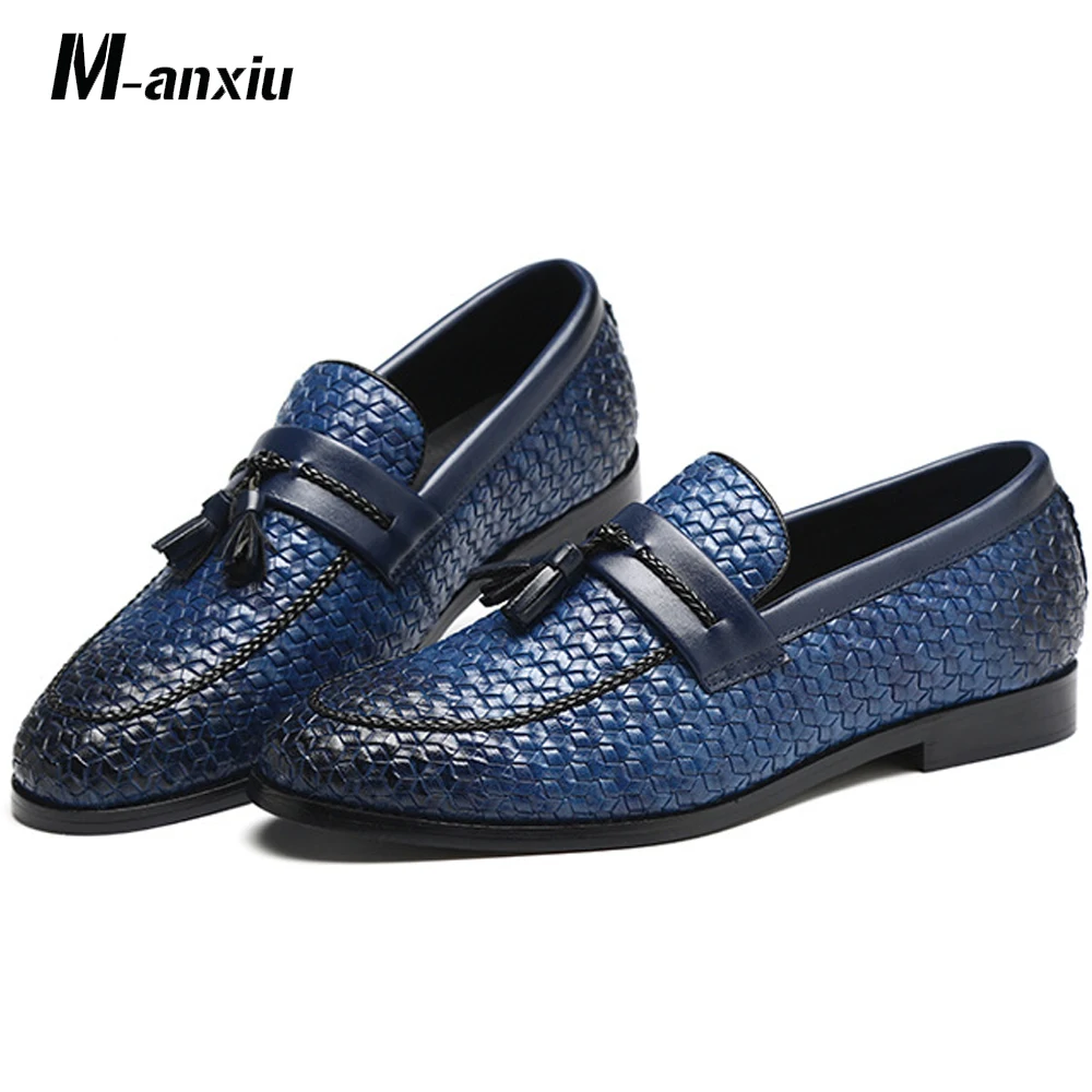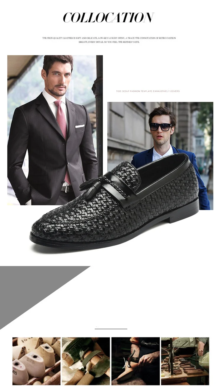 Модные переплетения с бахромой, с кисточками из кожи туфли без шнуровки; Повседневные Лоферы размера плюс круглый носок Мужская обувь подарок для папы