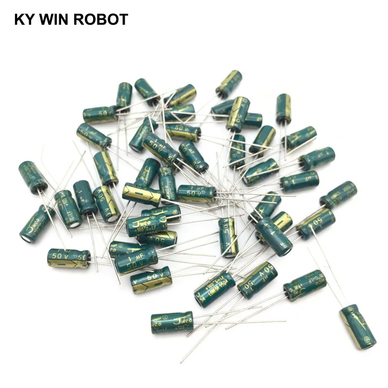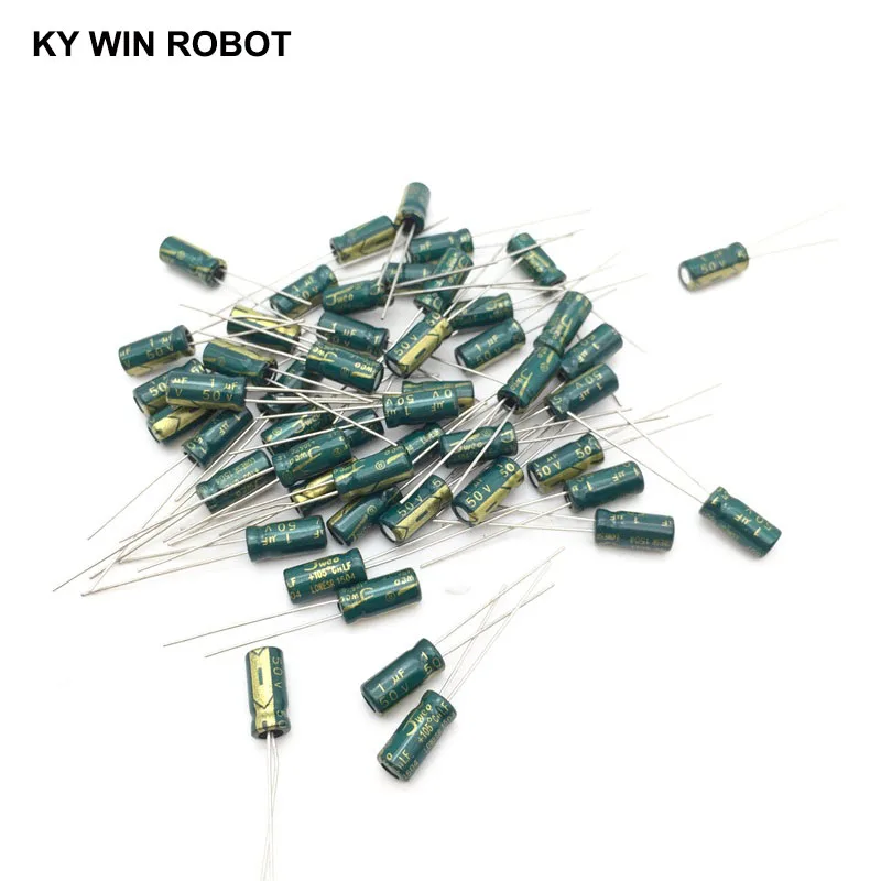 50 шт.лот 1 мкФ 50V 1mf 105C 5x11mm Алюминиевый электролитический конденсатор 50V1UF радиальный свинцовый 50 шт