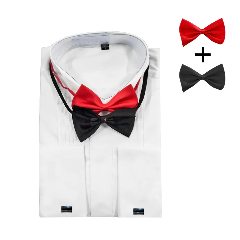 Мужская классическая рубашка с длинным рукавом, свадебная рубашка под смокинг с французскими складками и запонками, топ с пуговицами на пуговицах, для джентльменов и вечерние, YN10367, 2020