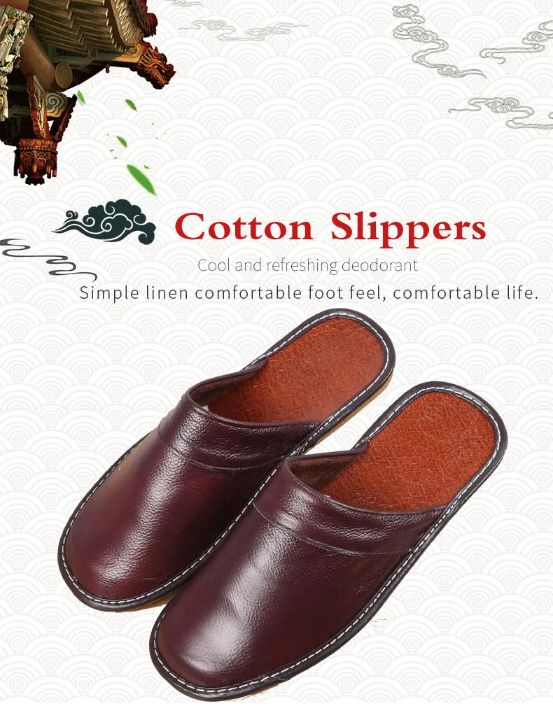 Тапочки мужские Нескользящие из натуральной кожи, весна-осень термальные Тапочки