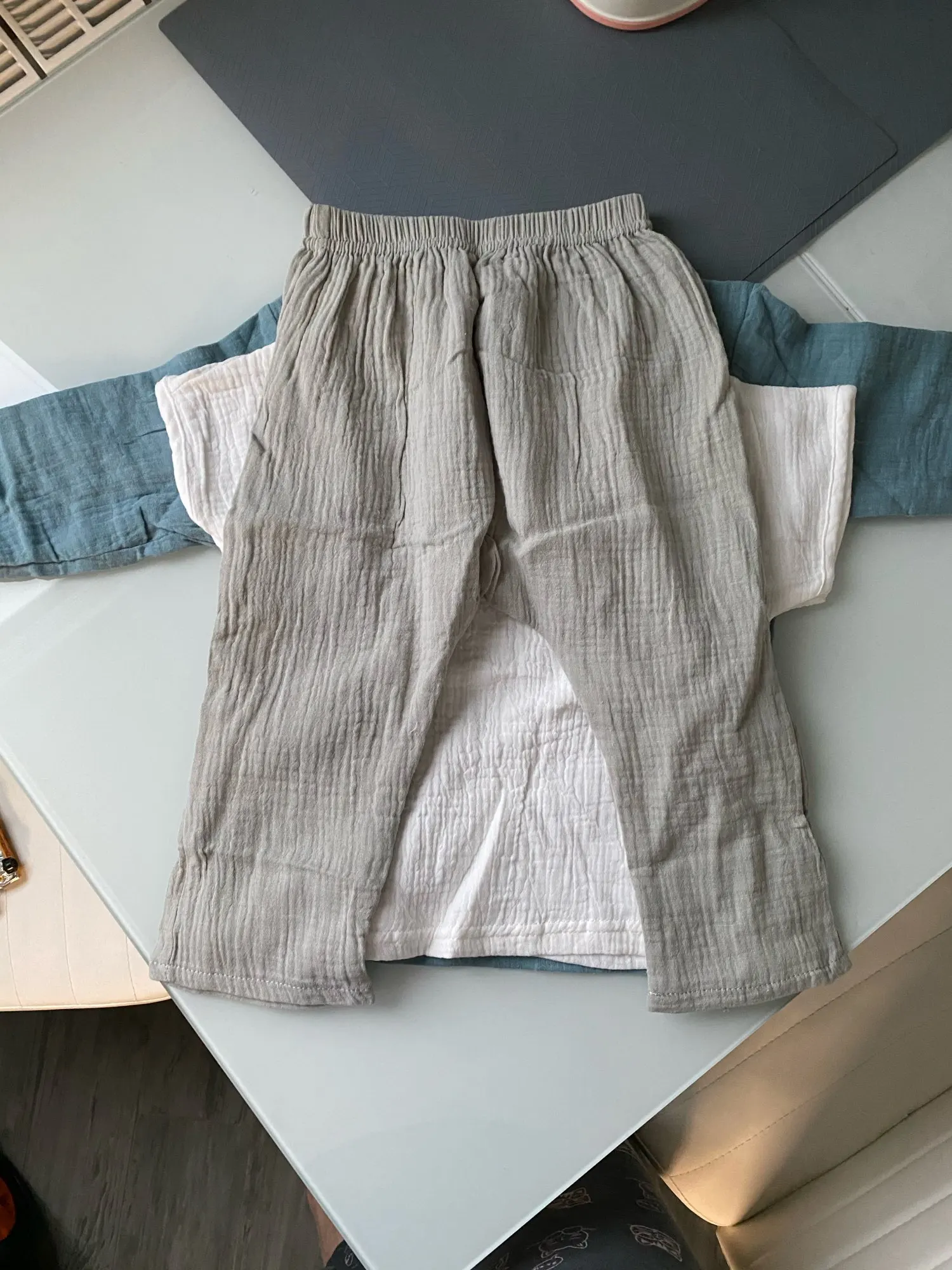 Новинка 2022, летние однотонные льняные плиссированные детские брюки, длиной до щиколотки для маленьких мальчиков, брюки-султанки для детей