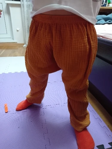 Ребенок ростом 104см, в длину короче чем в таблице, на нынешний рост подойдут и немного на вырост, будут смотреть норм. Сами штаны как есть на фотке, цвет только горчичныц, не ярко жёлтый, что мне больше нравится. На лето и дома иногда ходить хорошие штаны.