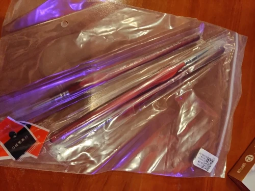 заказал 23.02. продавец отправил 25.02. 14.03 прибыло в Ростов. 25_27.03 доставили в ДНР. пришло в общей посылке с другими товарами. Кисти хорошие, в руке лежат удобно, был приятно удивлен данному форм фактору. но, это не фирма Maries, это Weizhuang. Т.е. фотография у продавца не соответствует реальности. хотелось бы получить кисти такого же форм фактора от Мариес (или хотя бы в описании товара была данная информация). но внешне кисти качественные. немного железная обмотка на одном шаталась, слегка придавил, и стало норм. последнее фото не относится к данным кистям, но оно добавлено для примера, чтобы наглядно было видно разницу в толщине кисти (на 00) между Мариес и Вейцуанг. С продавцом не общался. Эргономика кисти очень зашла, поэтому, не взирая на недочёт в фотографии продавца (хотя в отзывах я и видел разницу, но надеялся на какое-то изменение товара может), ставлю 5 звёзд. Продавца и данную модель рекомендую (чтобы почувствовали как она в работе).