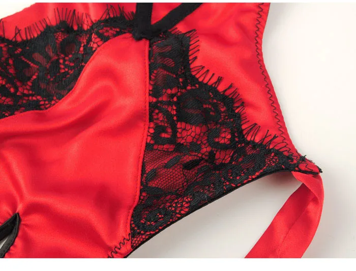 Соблазнительное Дамское белье с открытой промежностью Женское нижнее белье, экзотическое боди с кружевными бретелями, пижама со стальными кольцами