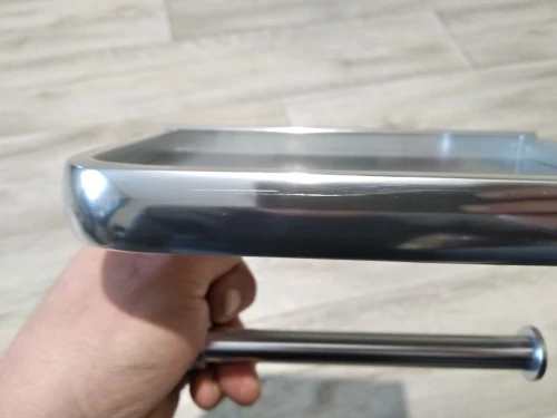 Сама полочка действительно выглядит хорошо, но мне пришла с браком: держатель для бумаги прикручен к полке криво, а сам валик не закреплён винтом в держателе - болтается и выскакивает при надевании рулона бумаги, к тому же он весь в царапинах. Винтик отсутствует, хотя по логике и если присмотреться к фотографиям на сайте, он должен быть. После получения товара только заглянула в коробку, полностью полку не доставала, поэтому брак сразу не заметила и подтвердила получение. А когда обнаружила дефект, обратилась к продавцу - сначала он достаточно быстро отвечал, но "включил" непонимание, в чём проблема. Потом попросил видео. Первое видео якобы не получил, а после отправки второго отписал, что обратится к сервисному инженеру и пропал. Срок для открытия спора, к сожалению, пропустила. Так что проверяйте внимательно товар перед тем как подтвердить получение. Данный продавец не отвечает за качество своего товара.