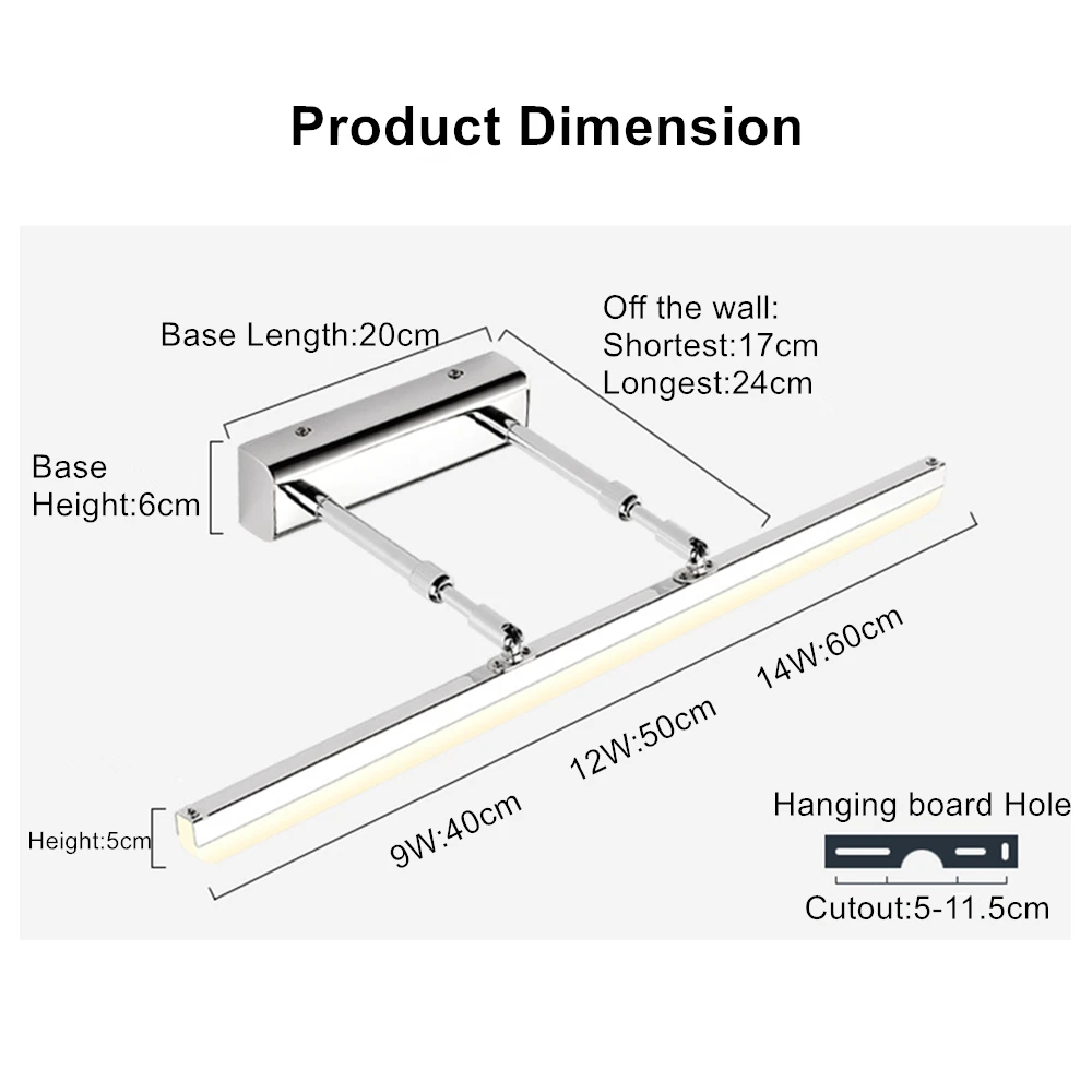 DBF вращающийся на 180 градусов 9 Вт 12 Вт IP65 водонепроницаемый бра с регулируемой длиной настенный светильник для ванной комнаты светсветильник для современный светодиодный светильник для зеркала