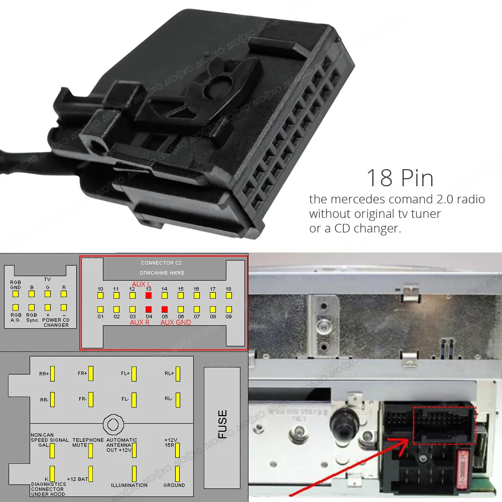 -Модуль bluetooth сделан для Mercedes Benz-Просто подключите 18-контактный разъем к розетке задней части вашего радио-Вы можете просто вставить этот элемент на заднее радио, а затем подключить красный провод к 12 В +, черный провод к 12 В-.-Сопряжение телефона или mp3 или планшета с bluetooth к модулю-Это версия bluetooth 4,0, не требуется пароль при подключении.-Выберите AUX с вашего радио, и вы можете воспроизводить музыку с телефона в вашем автомобиле.Подключите телефон или планшет к модулю bluetooth. И выберите Aux с вашего радио, затем вы можете использовать свой телефон для воспроизведения музыки через Автомобильные колонки.Вы можете слушать музыку с телефона/планшета/mp3 (они должны иметь функцию blueooth).