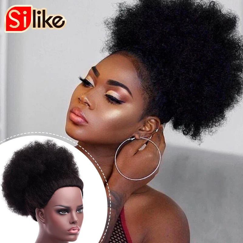 Силиконовые синтетические Короткие афро пуховые волосы пучок высокотемпературный шнурок пони хвост на заколках для наращивания кудрявые пуховые волосы пучок