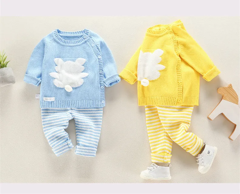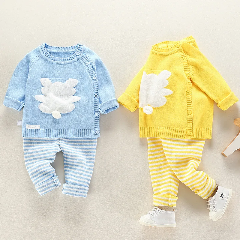 Одежда для малышей; Вязаный свитер; Детская верхняя одежда; Сезон весна-осень; Новинка 2021 года; Костюм с круглым вырезом и цветочным принтом