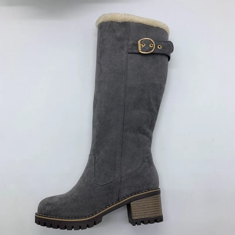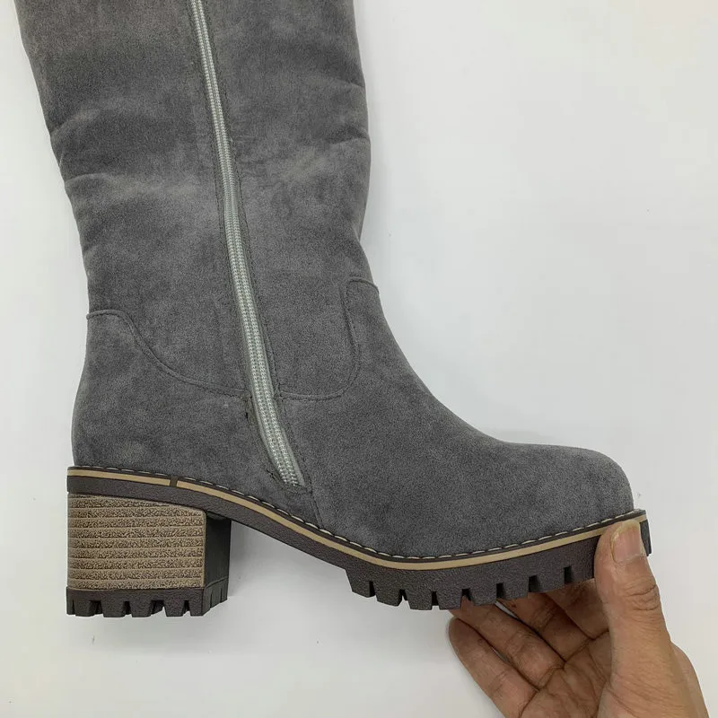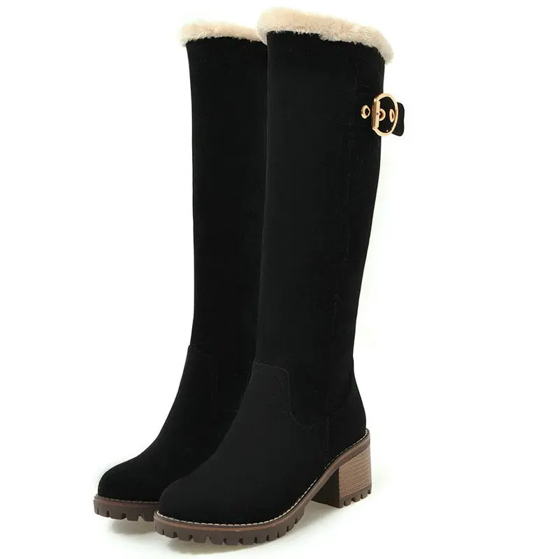 Сапоги женские зимние на меху, до колена, на квадратном каблуке