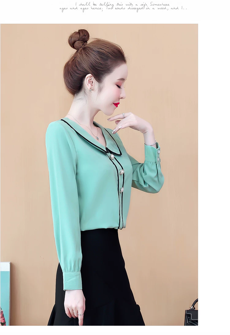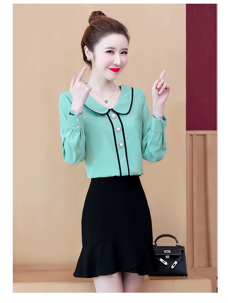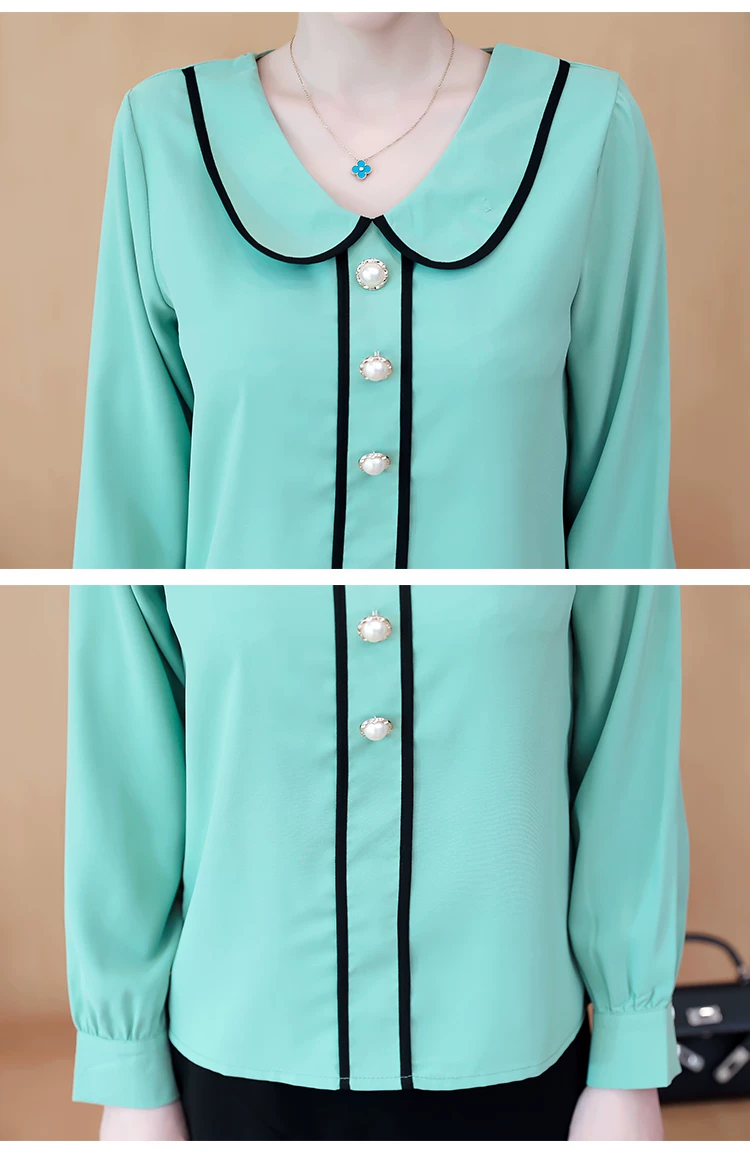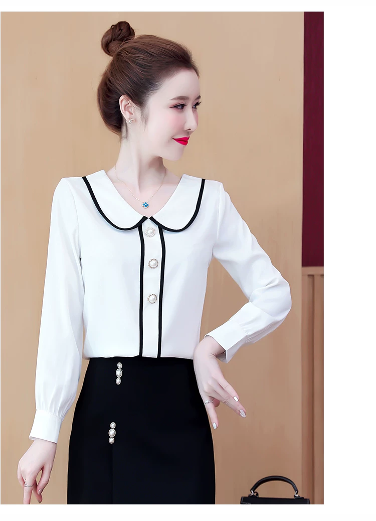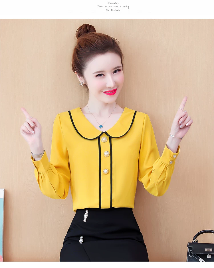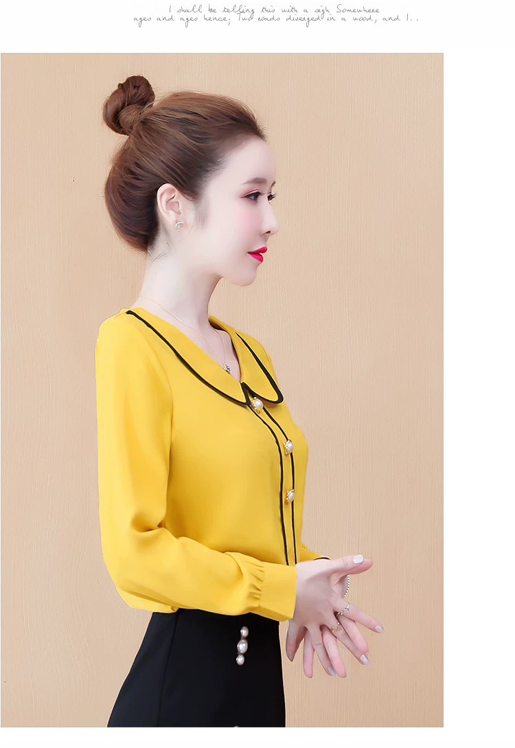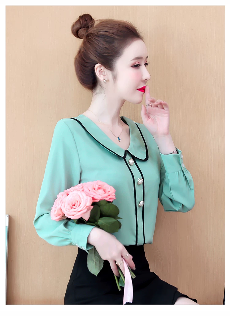 Блузка женская шифоновая с длинным рукавом и кукольным воротником, A146