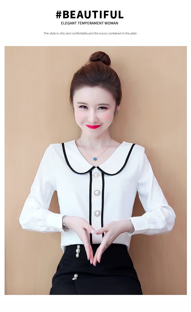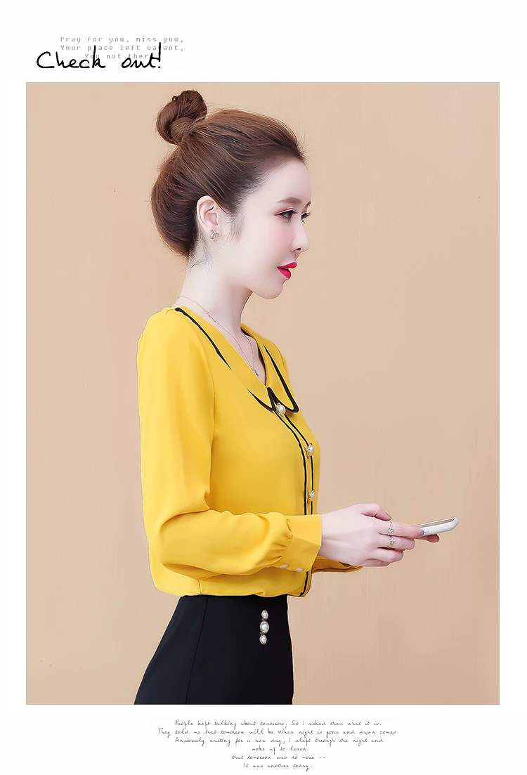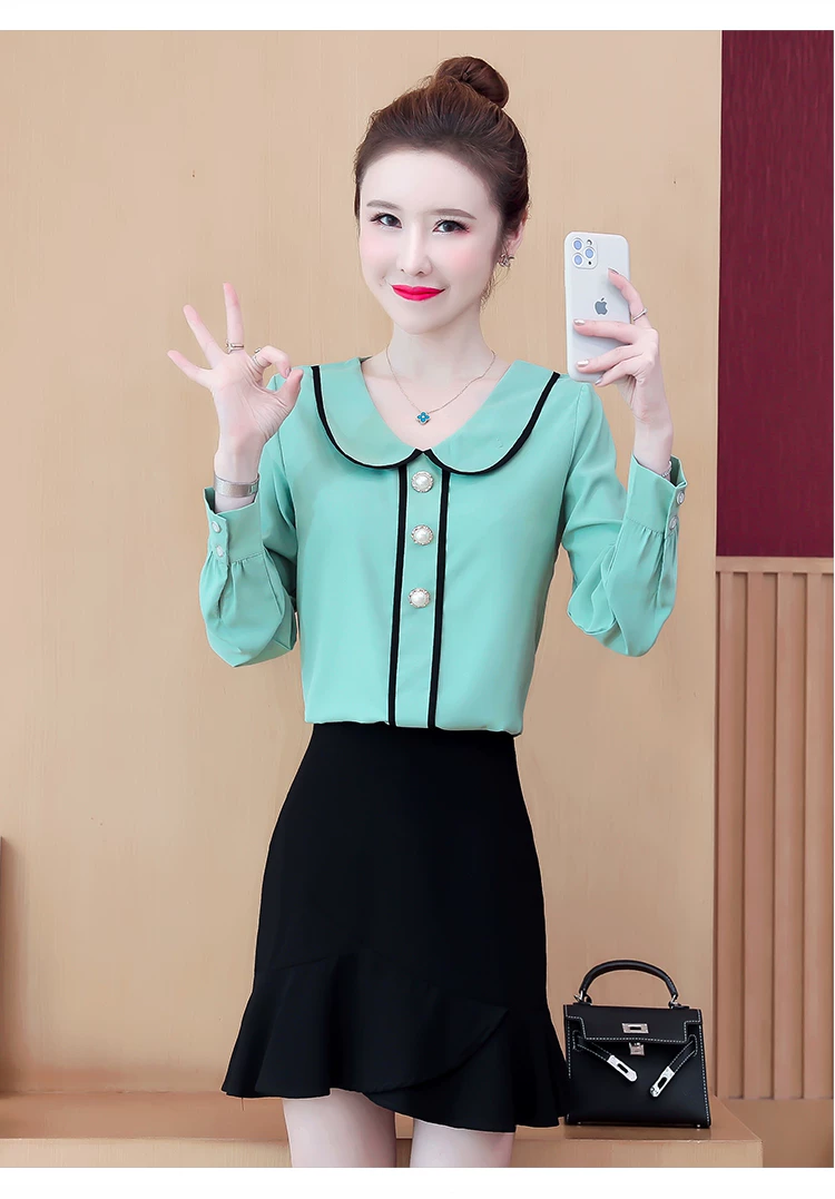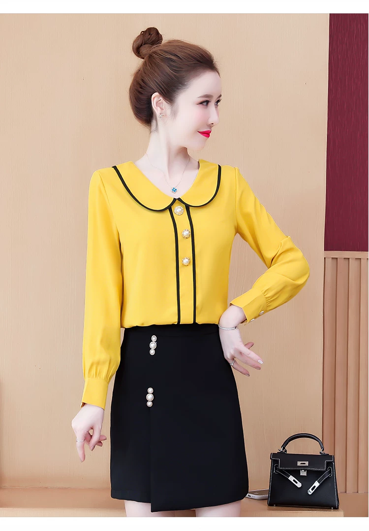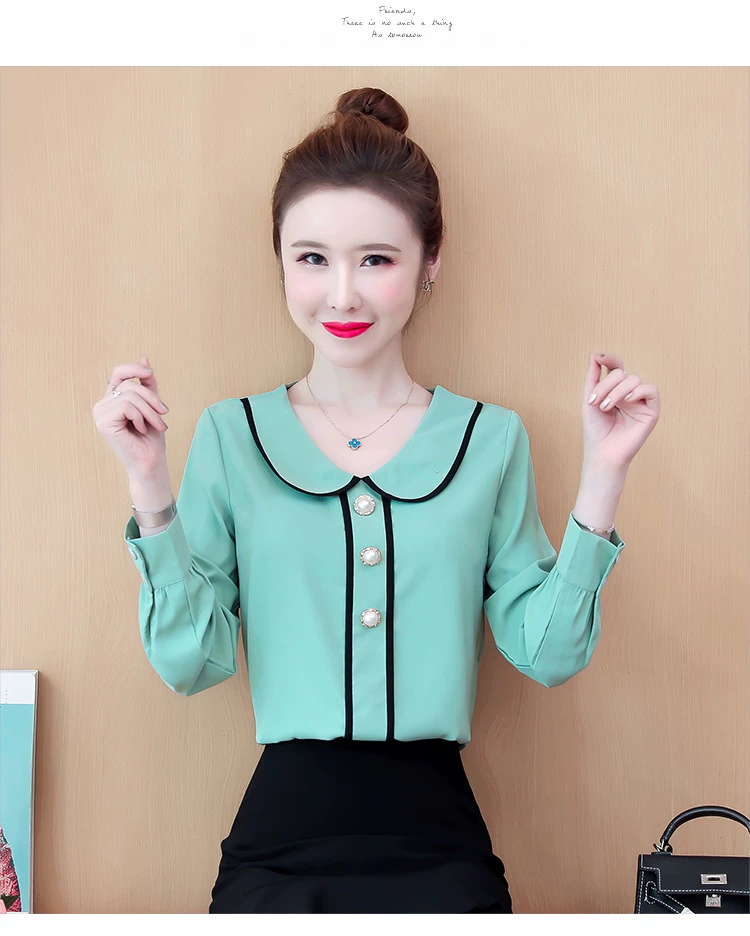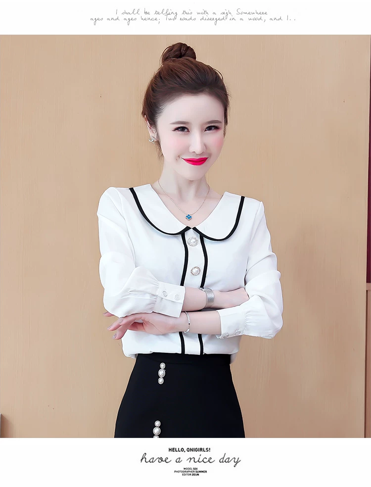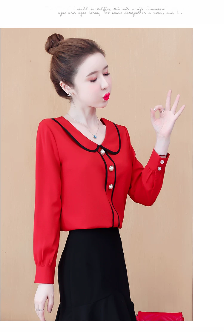 Блузка женская шифоновая с длинным рукавом и кукольным воротником, A146