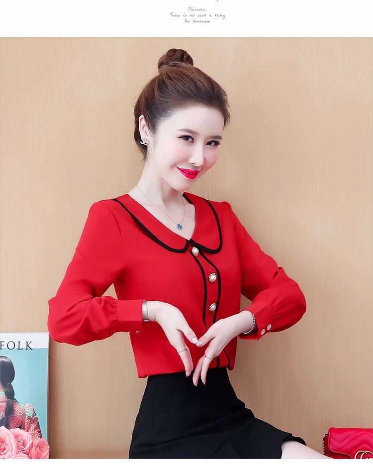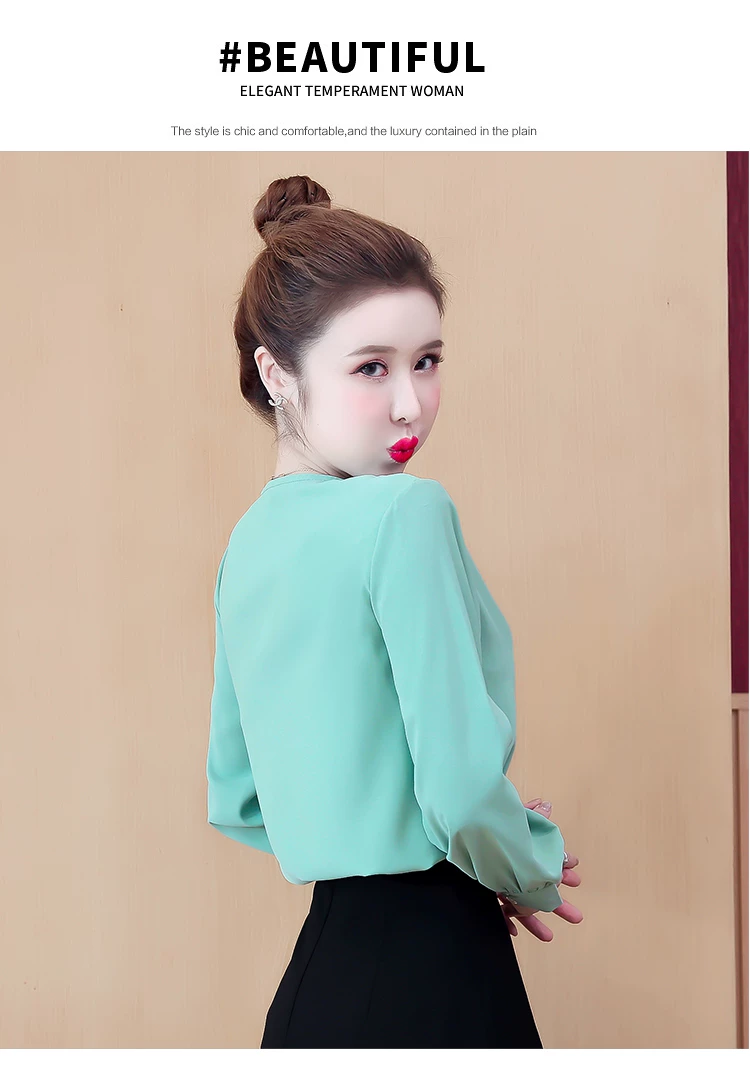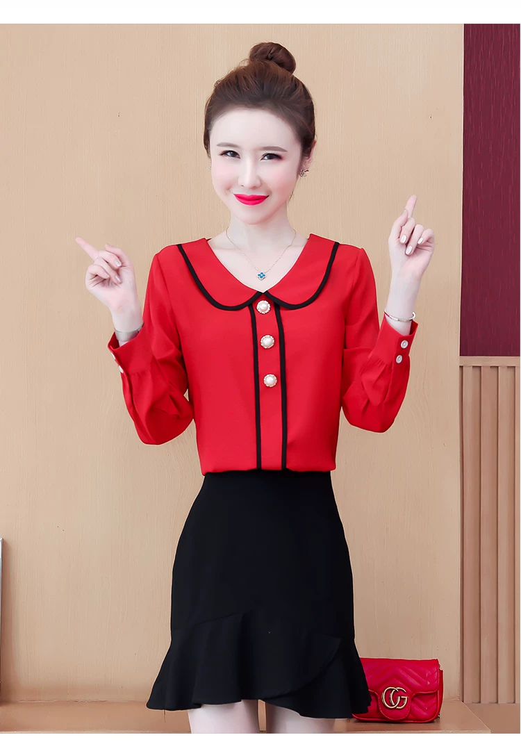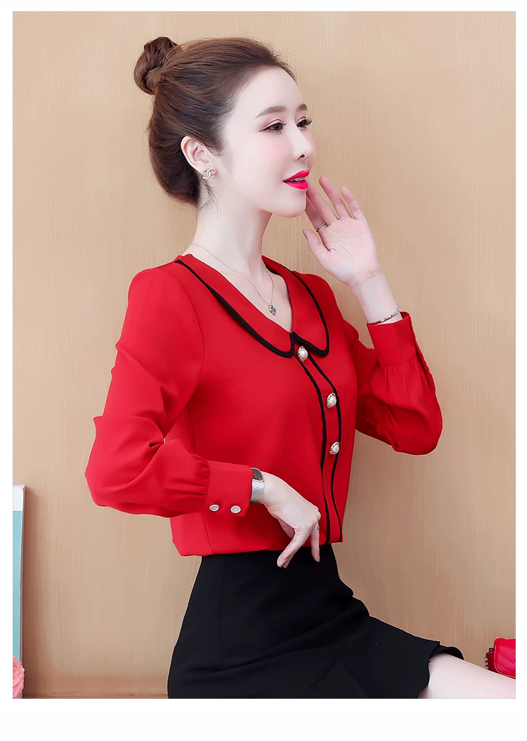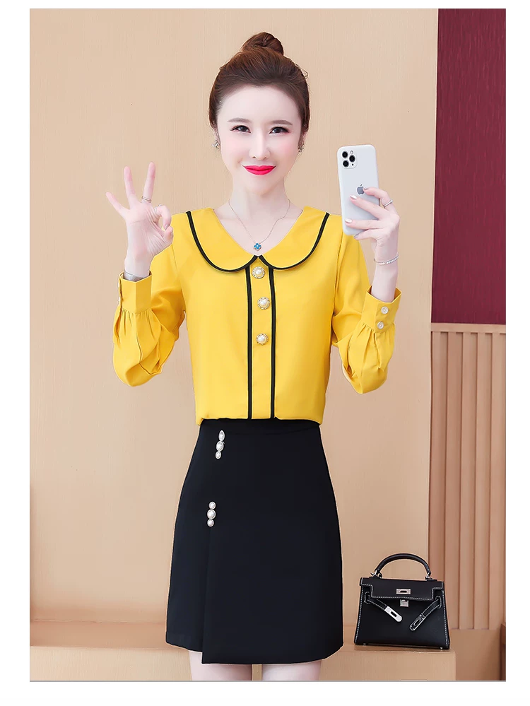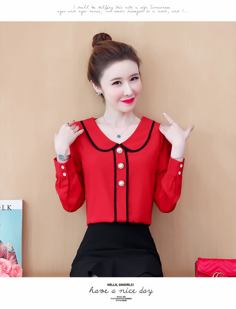 Блузка женская шифоновая с длинным рукавом и кукольным воротником, A146