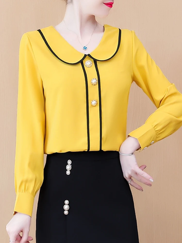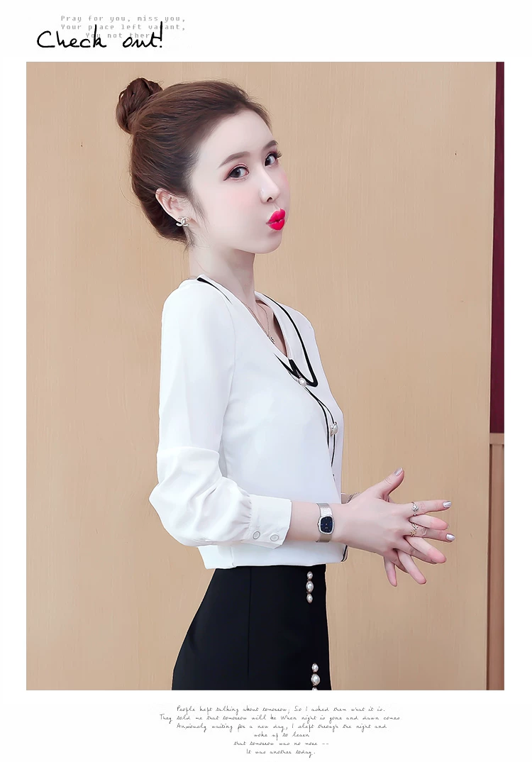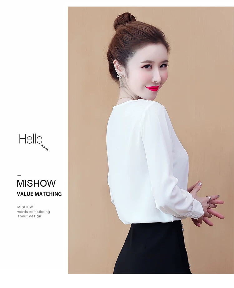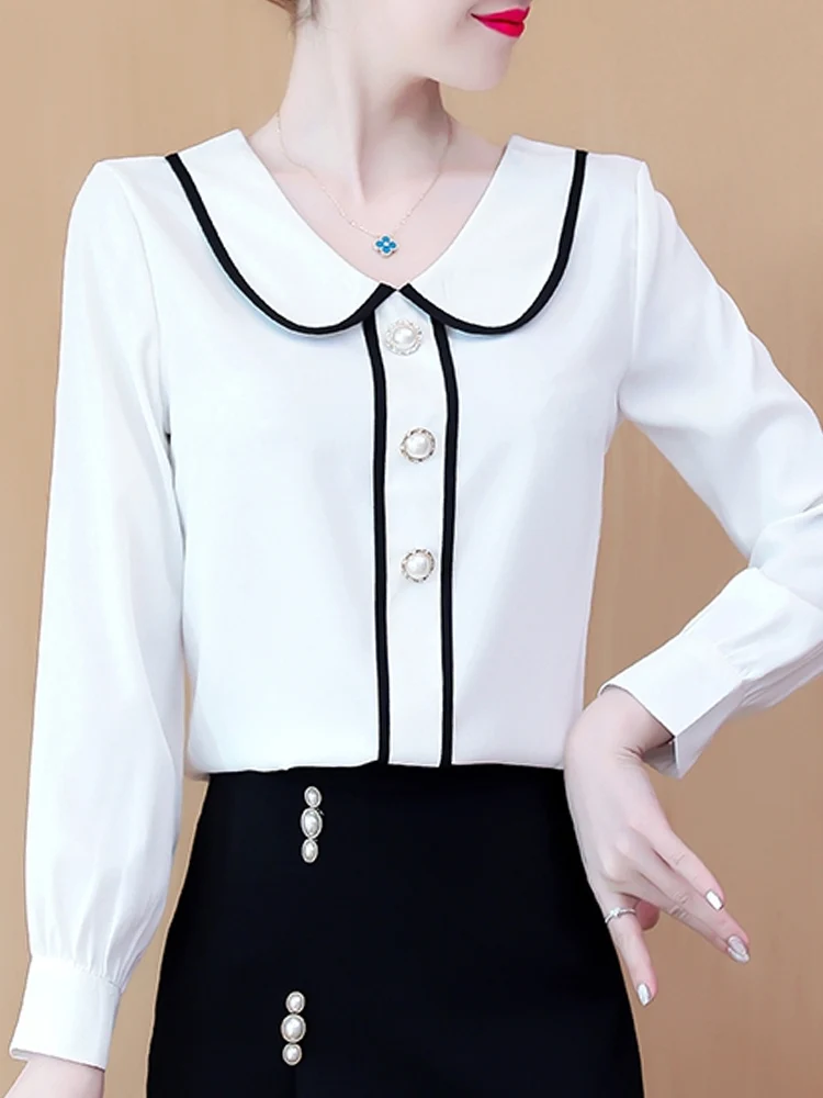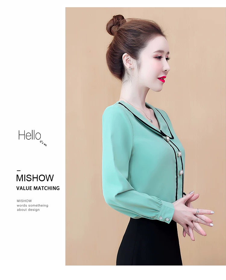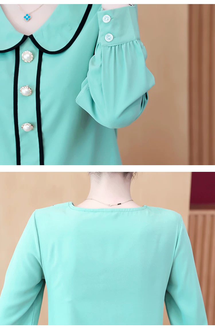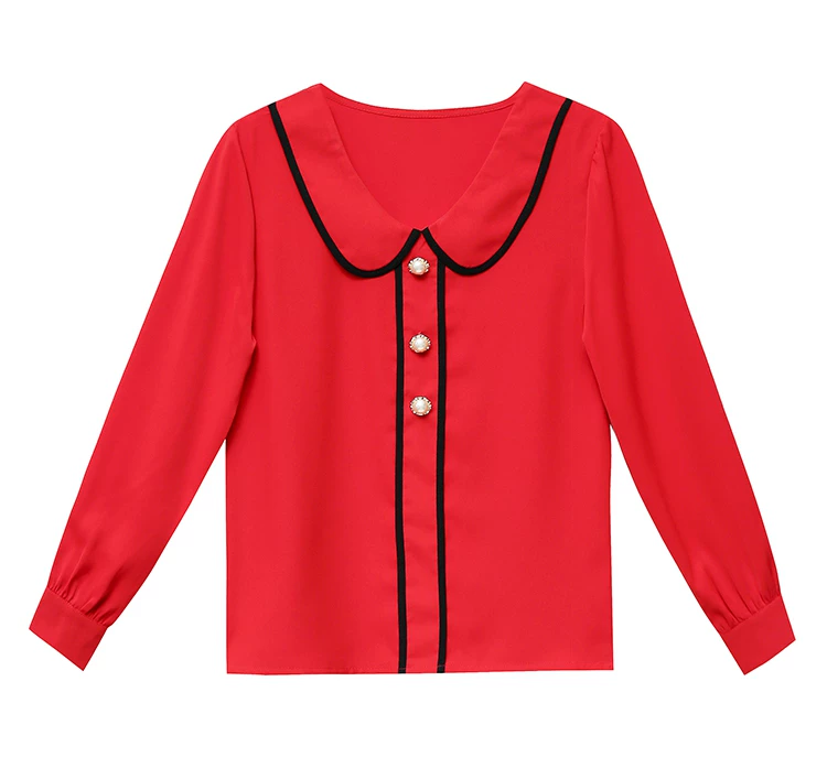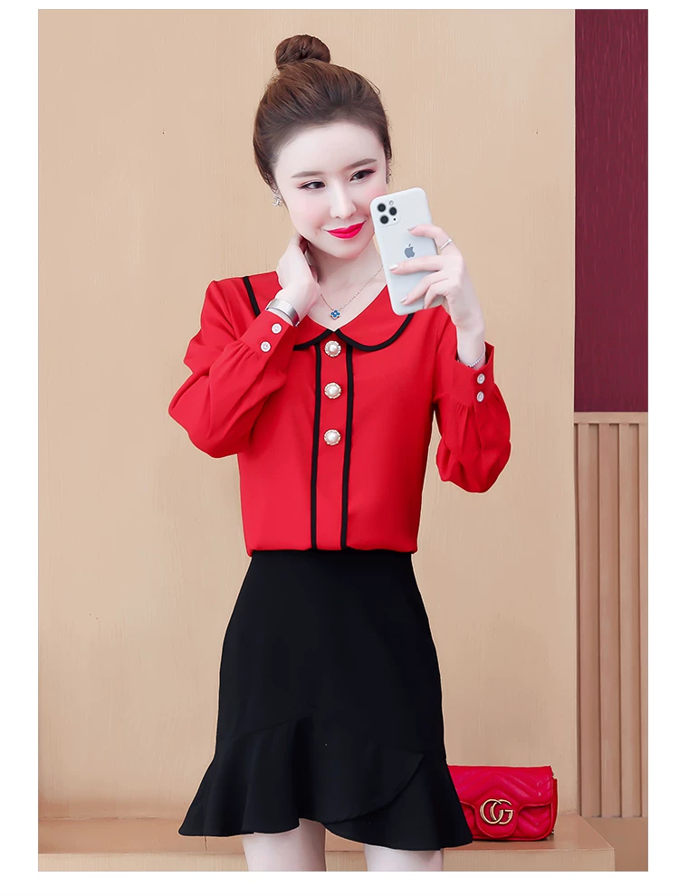 Блузка женская шифоновая с длинным рукавом и кукольным воротником, A146
