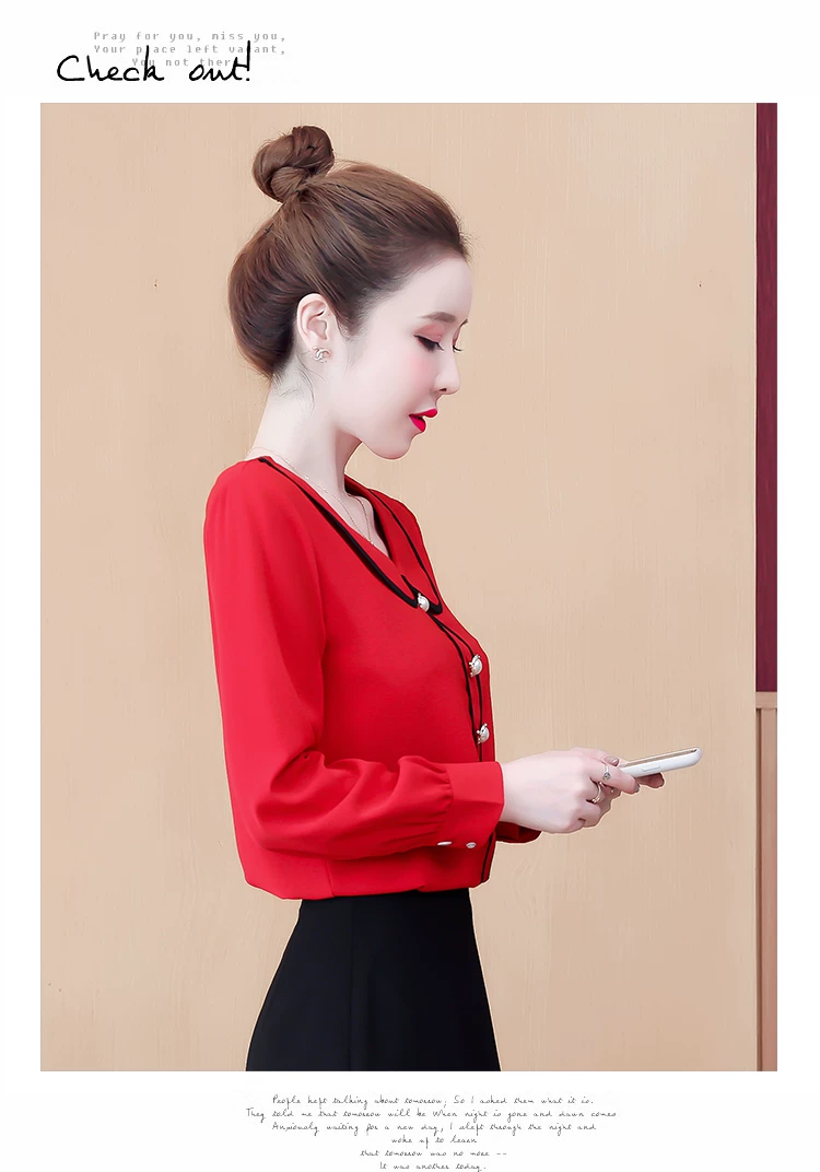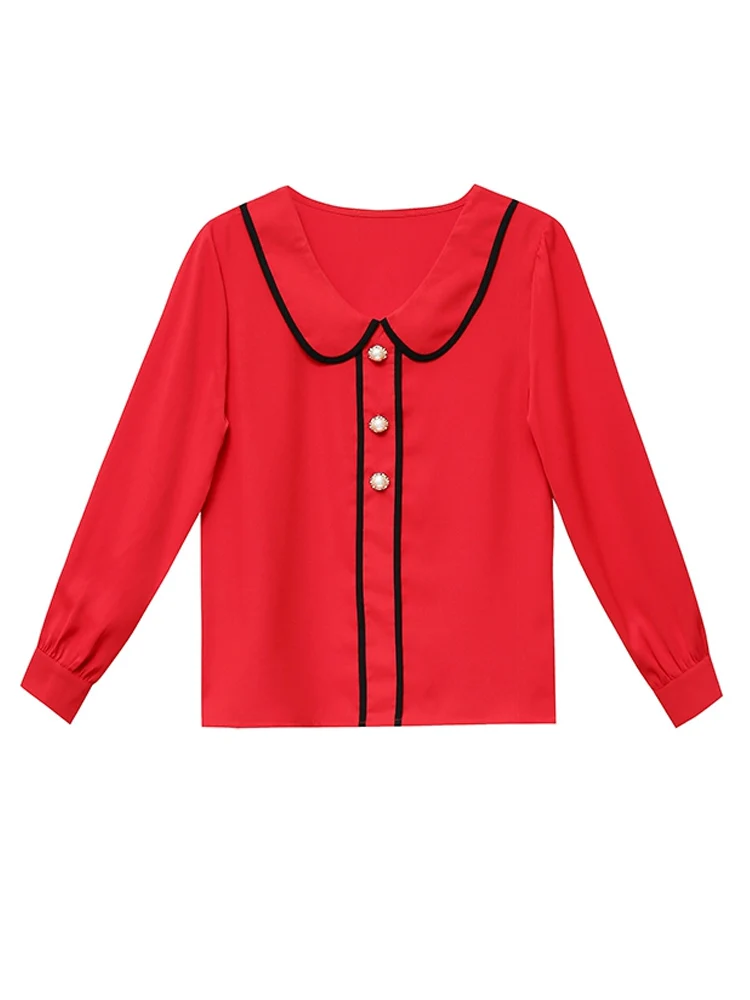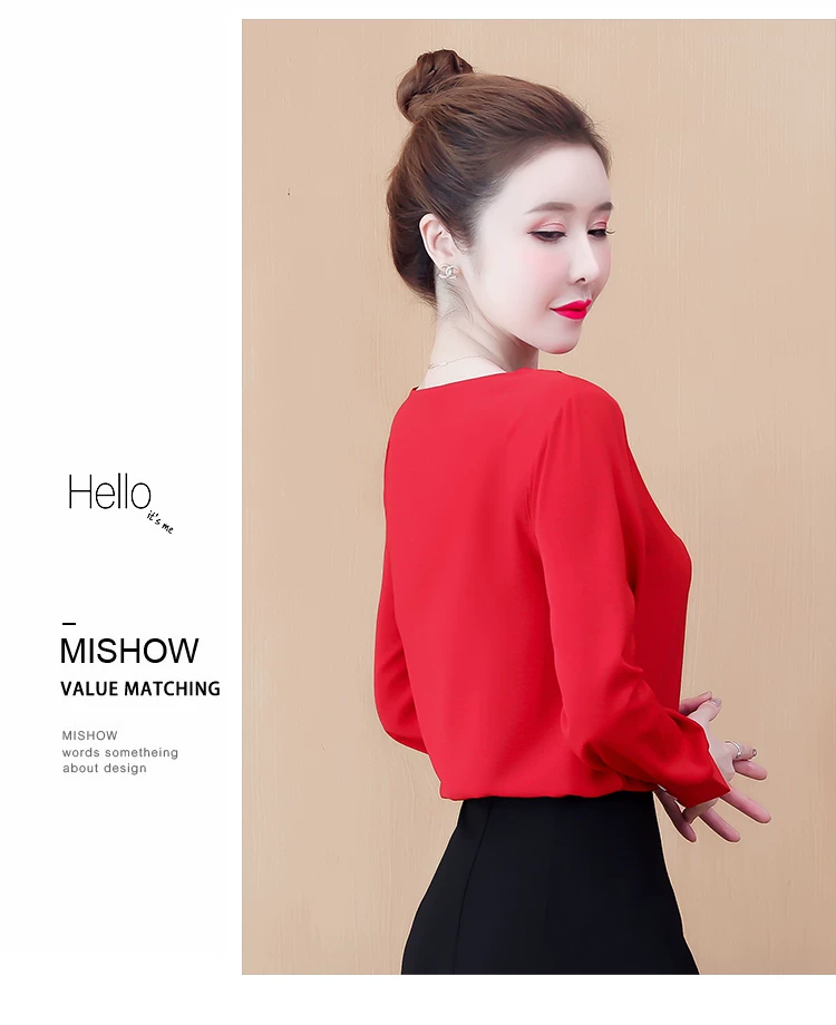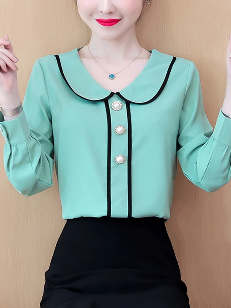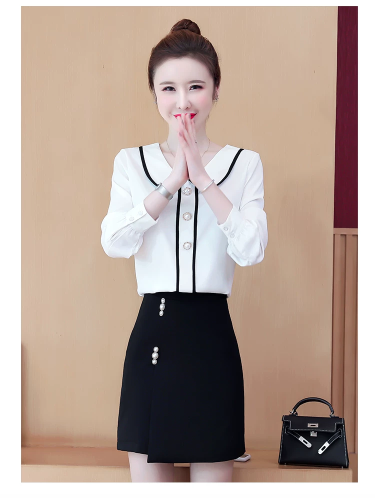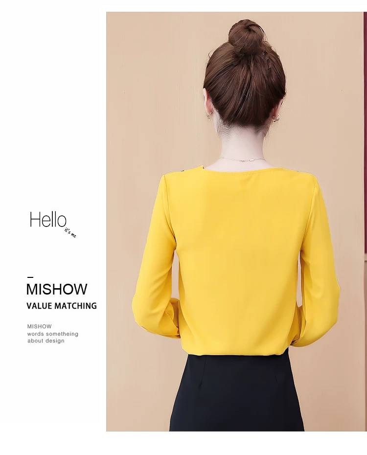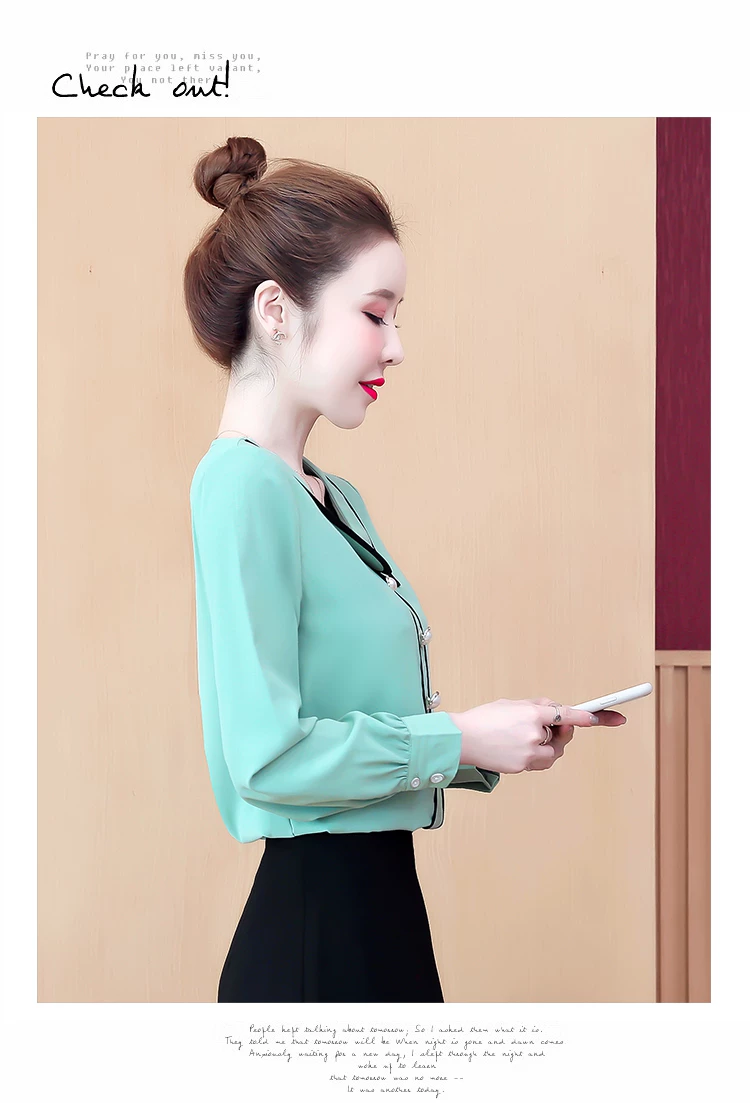 Блузка женская шифоновая с длинным рукавом и кукольным воротником, A146
