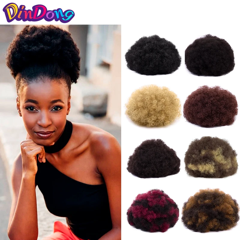 DinDong Синтетические афро-вьющиеся шиньоны, шиньоны, резинки для волос, удлинители волос, накладка на хвост, хвост, поддельные волосы