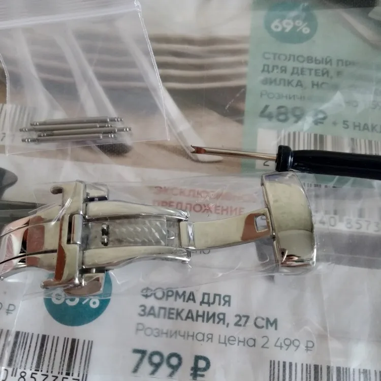 Точное описание. Застежка подходит для ремешка часов толщиной 3 мм. Когда вы разворачиваете его/открываете застежку, она открывается. Инструмент выглядит хорошо, маленький, но функциональный. 4 дополнительных контакта были включены в поставку. Это было мило.
