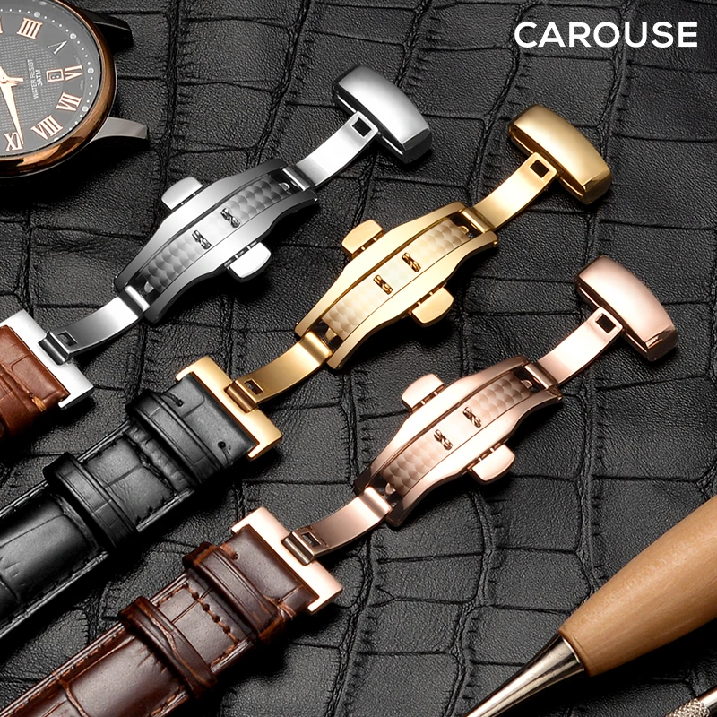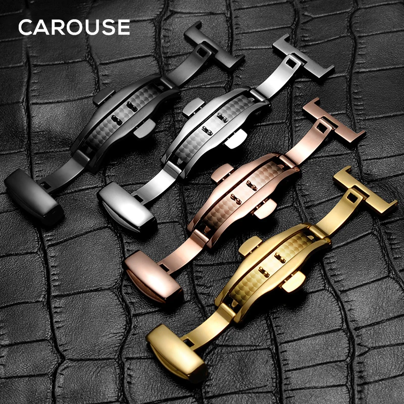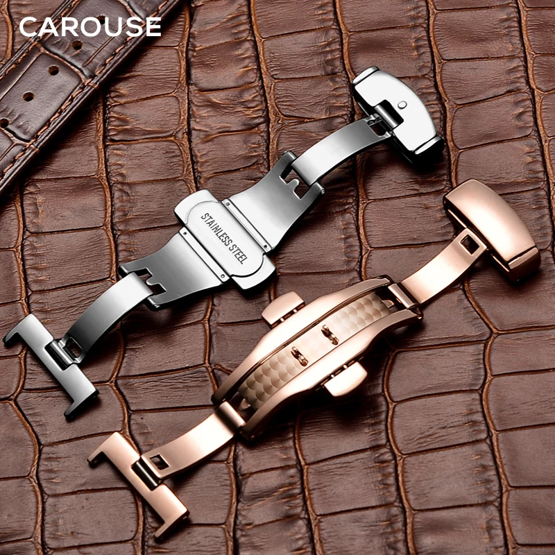 Ремешок для часов Carouse с застежкой-бабочкой, сменный Браслет с двойной кнопкой, розовое золотосеребро, 12 14 16 18 20 мм