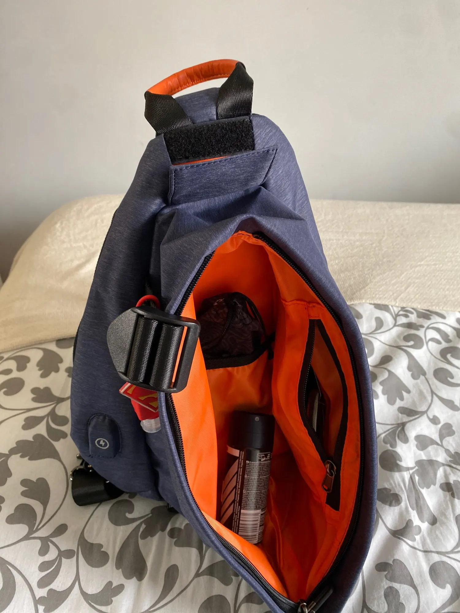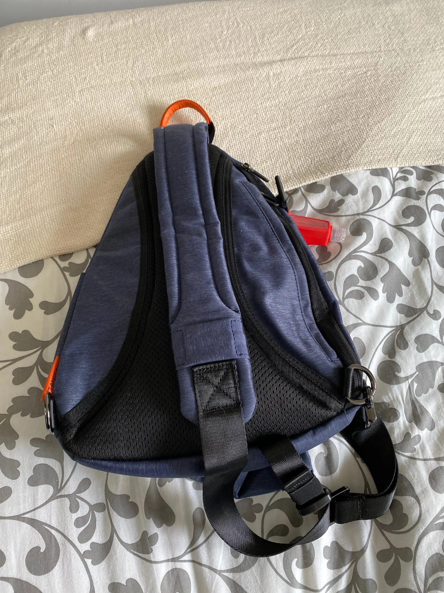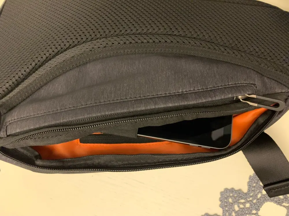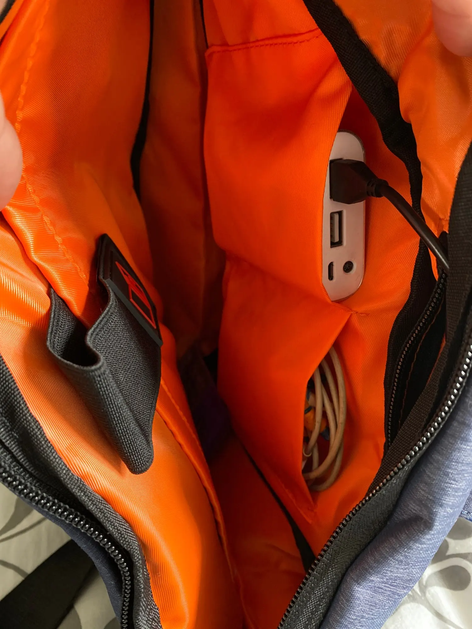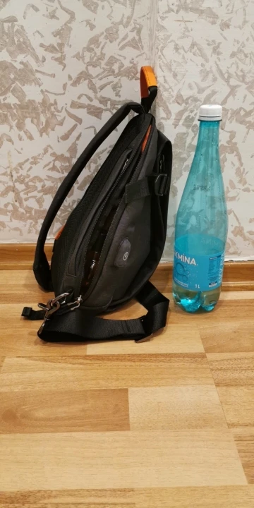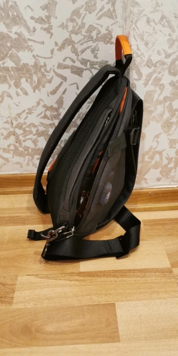 Отличная сумка за такую цену. Ткань и покрой хорошие. Зарядный шнур радует тем что он съемный (для стирки или удобства) и прячется в отдельное мини-отделение. Зачем сделали небольшой клапан сверху, ведущий в заднее отделение не совсем понятно - тениссную ракетку туда что ли засовывать? Доставка была курьером из IML - доставили за пару дней без каких то проблем.