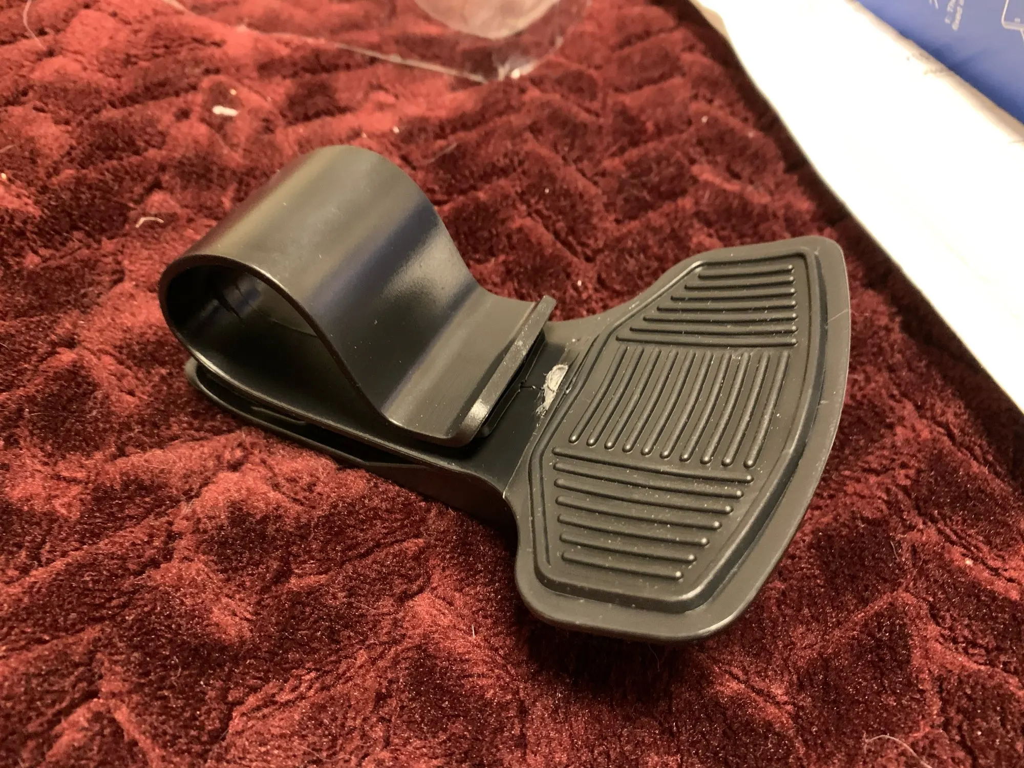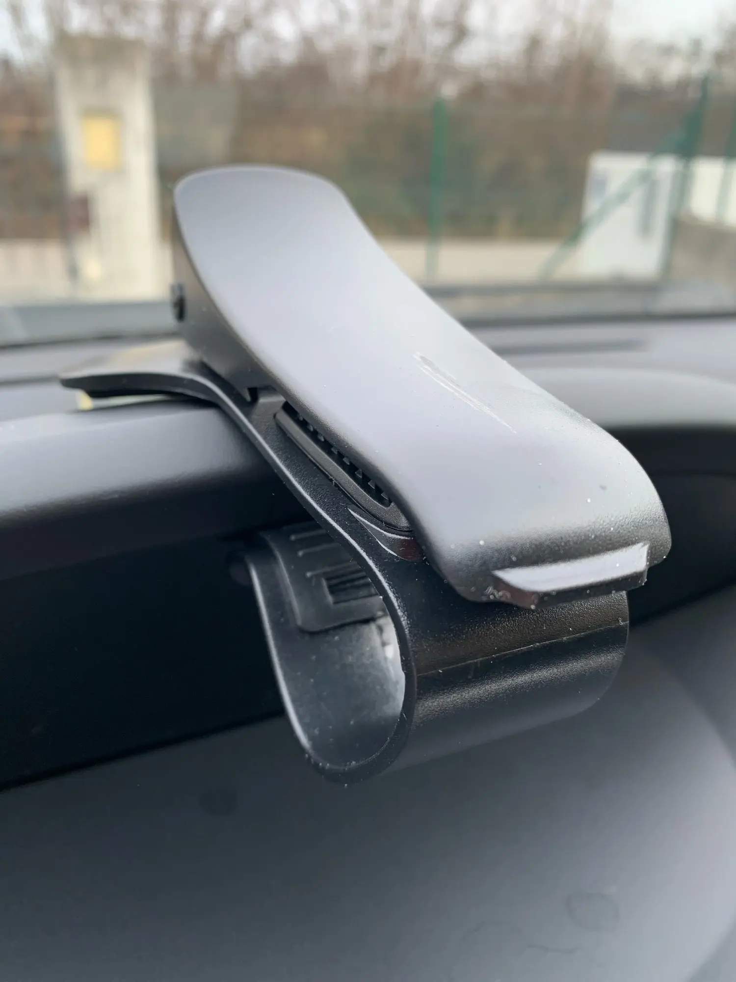 Никаких претензий к качеству. Лапки снабжены резиновыми накладками. Пружина хорошего качества. Изгиб достаточный, чтобы крепление хорошо зафиксировалось на толстом козырьке. Смутило только небольшое ограничение обзора. Буквально немного края левого крыла. Мне этот момент доставляет небольшой дискомфорт. Перестаю понимать линию своего автомобиля слева.