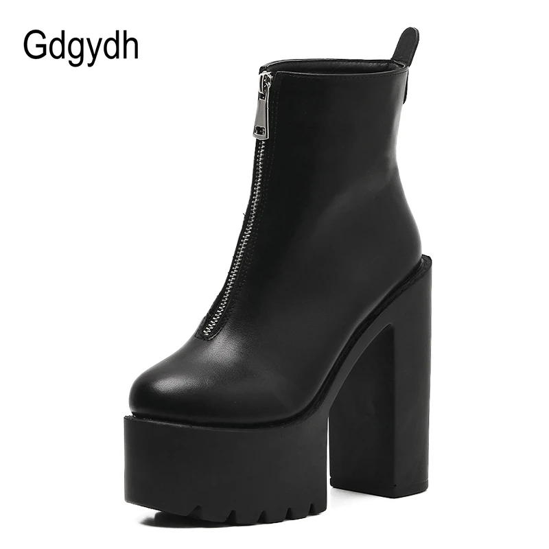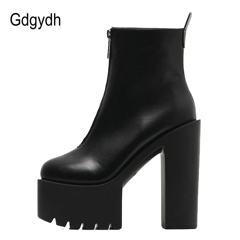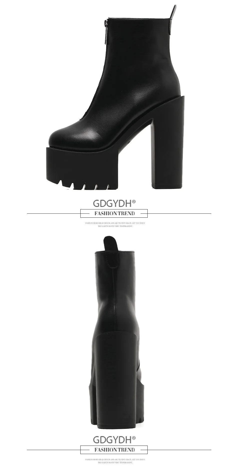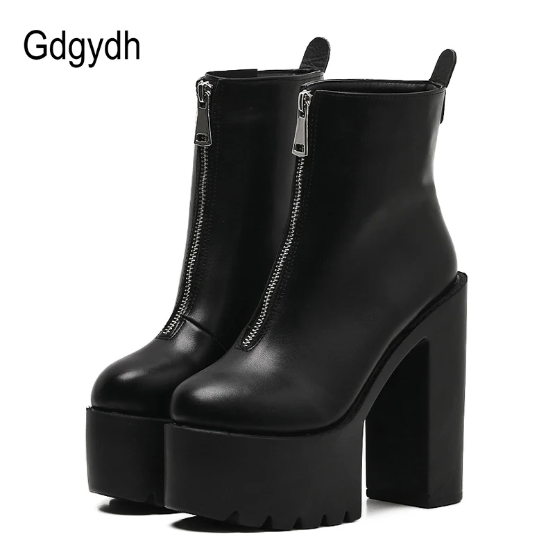 Женские ботильоны на очень высоком каблуке Gdgydh, черные, кожаные, на платформе, с круглым носком, для осени, 2022