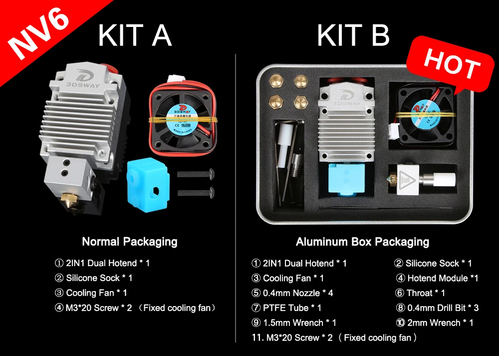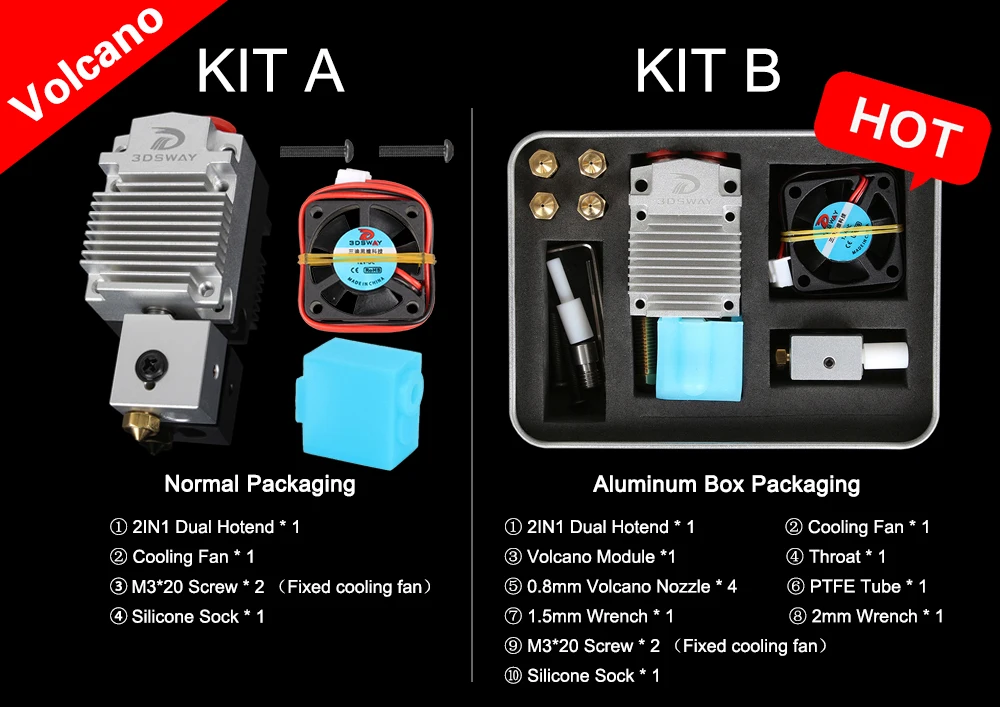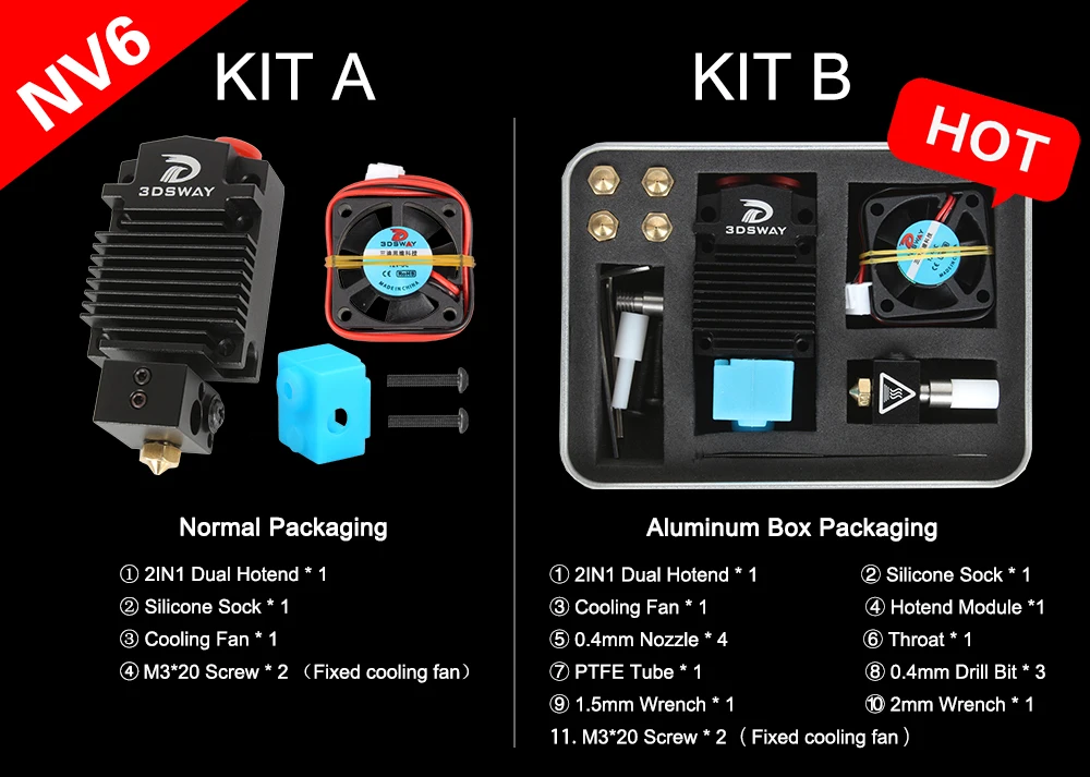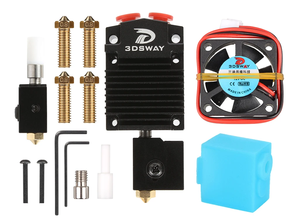 3D-принтер 3DSWAY XCR 2 в 1-V2, двухцветный, с подогревом 0,41,75, сопло вулкана 0,8, силиконовый носок и вентилятор