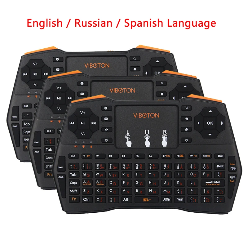 Беспроводная мини-клавиатура 2,4 ГГц с 3 языками, английская, русская, испанская клавиатура с дистанционным управлением для ПК, ноутбуков, Smart TV, Raspberry Pi