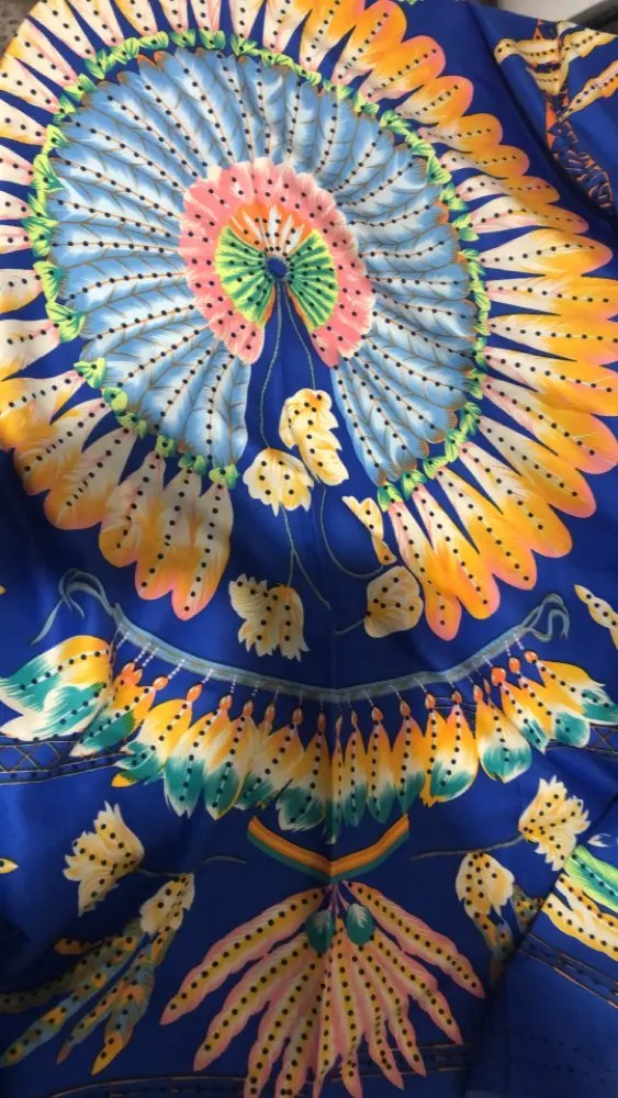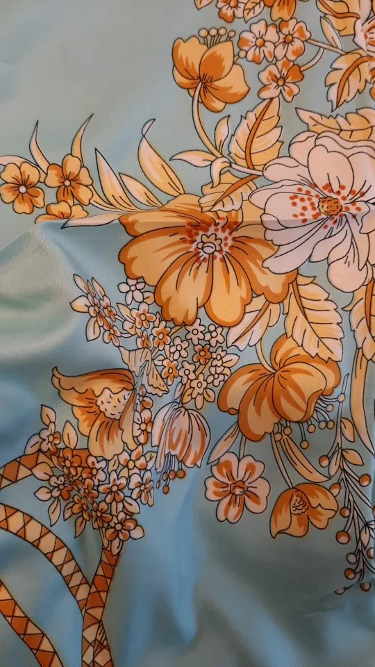 Хороший качественный платок. Цвета яркие и чёткие. Швы ровные. С продавцом не общалась.