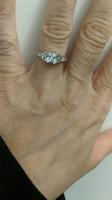 Колечко маленькое аккуратненькое, смотрится богато, рисунок выполнен точно,камешек блестит ооочень, стоит знак 925 (у ювелира не проверяла), в любом случае кольцо шикарное, буду надеяться, что прослужит долго. Рекомендую...