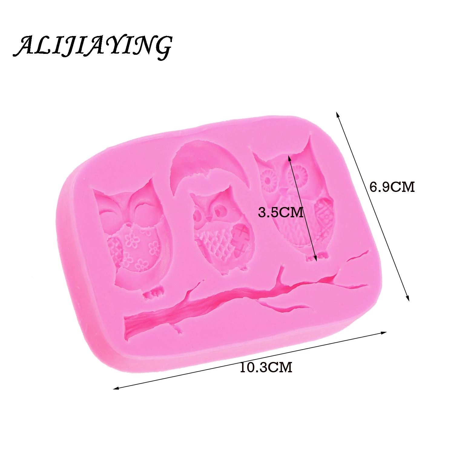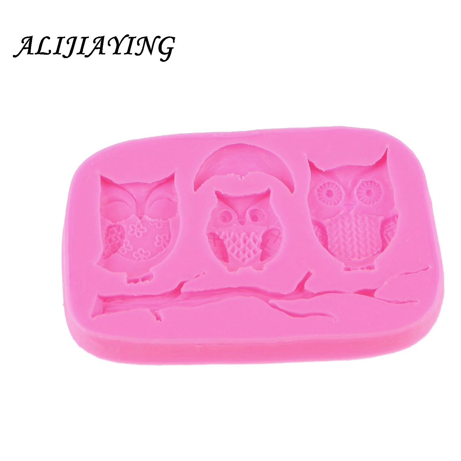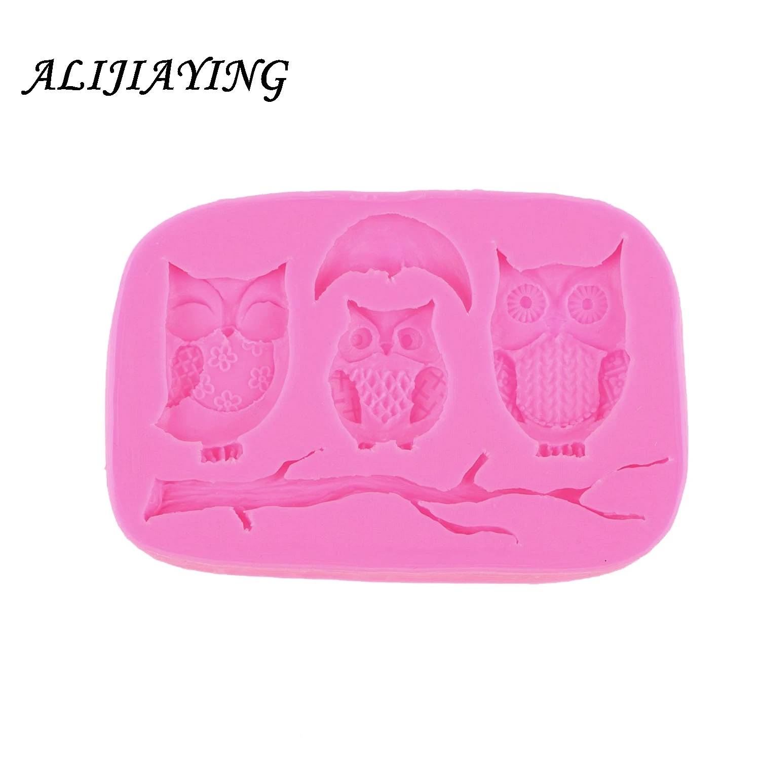 Силиконовая форма для выпечки, с изображением совы, Луны, ветки, животных, помадки, шоколада, аксессуары для кухни, форма для мастики D0449, 1 шт.