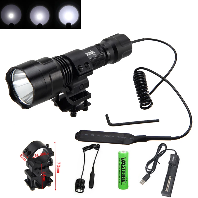 Тактический охотничий фонарь 2500lm T6 LED Flash светильник зеленыйкрасныйбелый фонарик + крепление для прицела Riflel + переключатель давления + зарядное устройство 18650 + USB