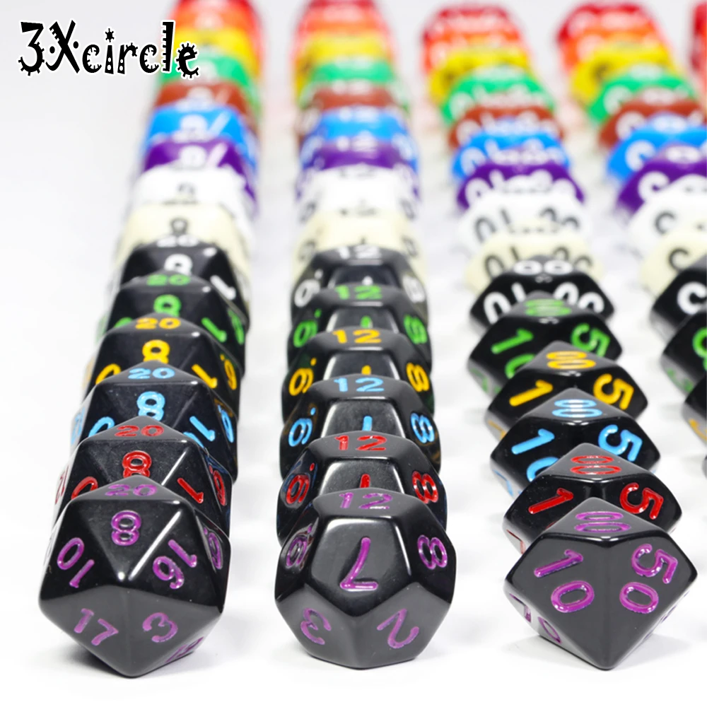 Набор из 7 непрозрачных кубиков, черный с синими чернилами, D4,D6,D8,D10,D10 %,D12,D20, многогранные кубики, Игральные кубики Dnd ролевые игры, настольные