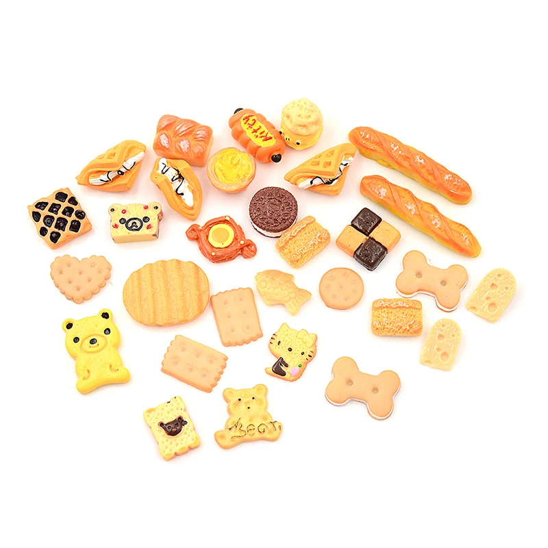 100% Высокое качество и Новинка Стиль: набор 1-хлеб, набор 2-мультфильм и десерт Цвет: многоцветный Миниатюрное украшение для кукольного домика Инструменты «сделай сам» для украшения телефона или шиньона Размер: 10-25 мм Комплектация: 30 шт./лот миниатюрная еда