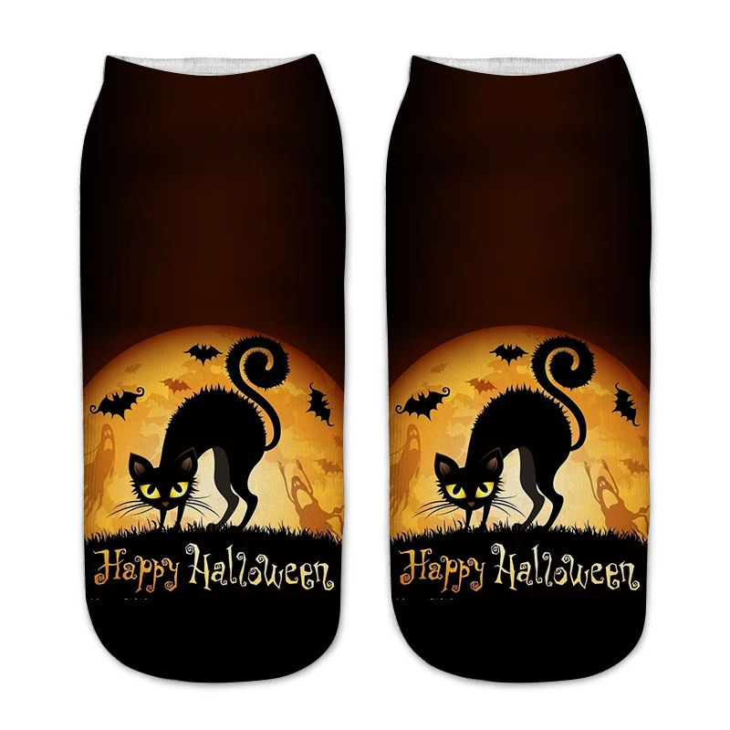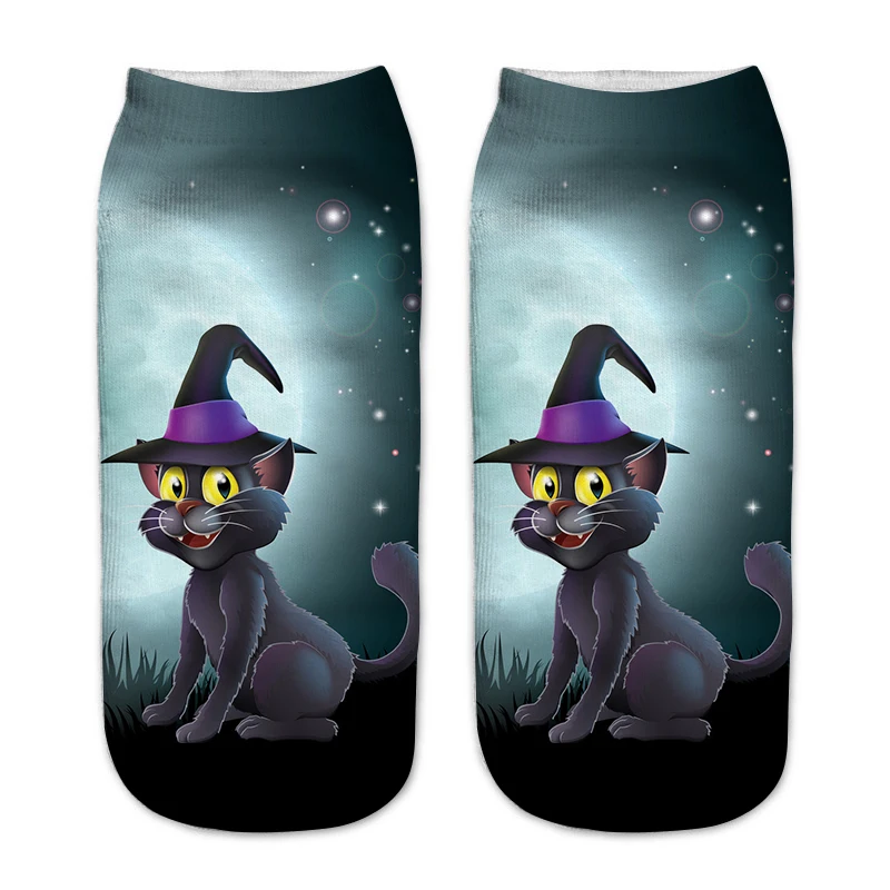 Носки Хэллоуин 2018 новые женские веселые 3D печатные тыквы фонарь ведьма замок кошка Sox Косплей вечерние подарки для влюбленных