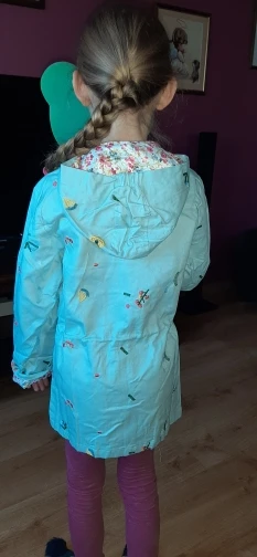 курточка хорошая, на рост 118, заказала 7, большевата, на следующий год доростем.По качеству: пошита аккуратно, джинса на тонкой прокладке.