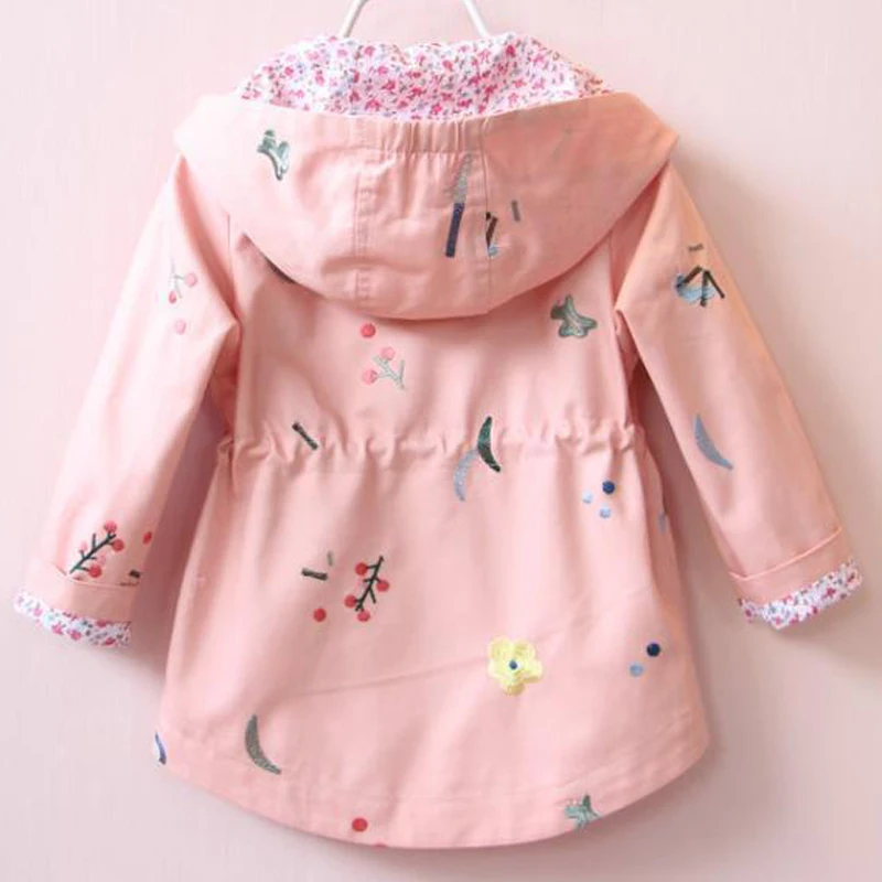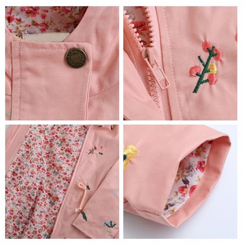 Ветровка для девочек, с цветочной вышивкой и капюшоном, весна-осень, 2021