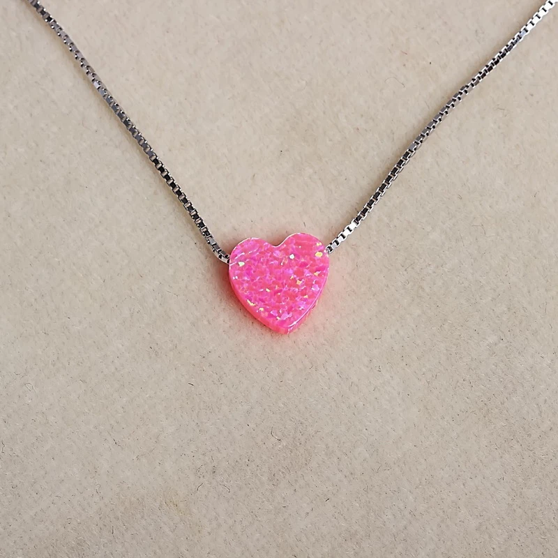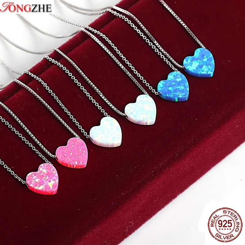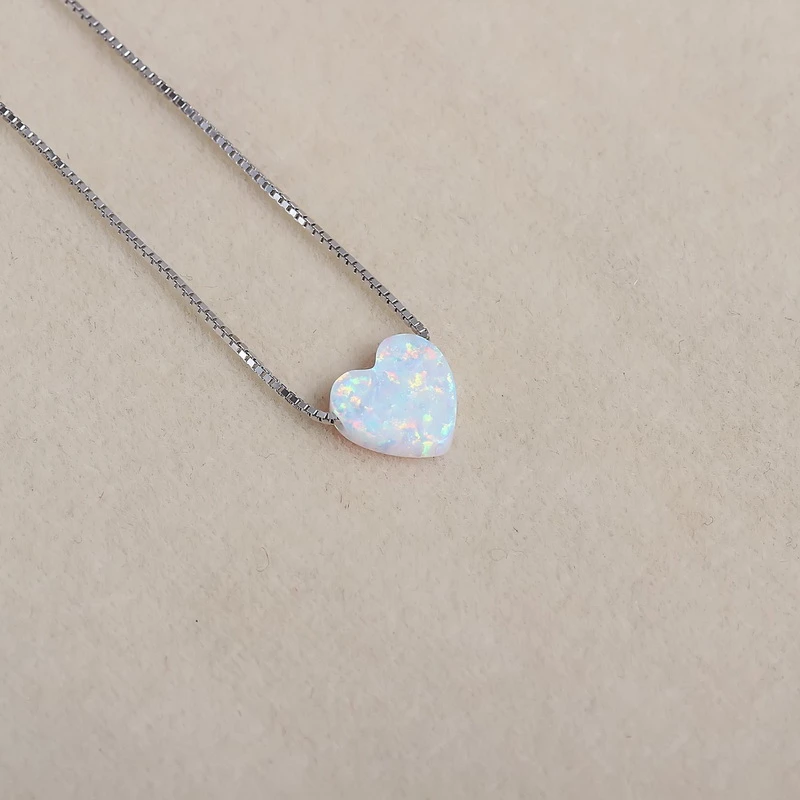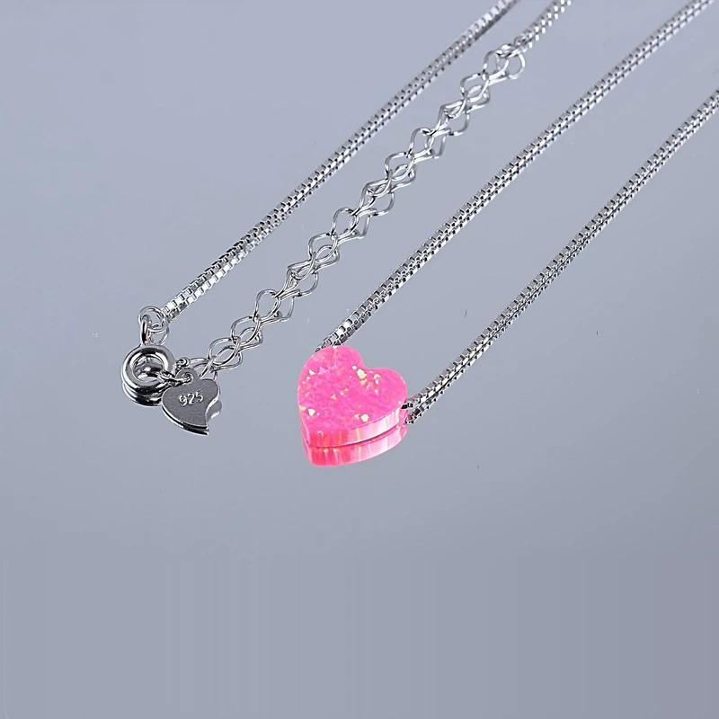 Ожерелье-чокер женское из серебра 925 пробы с искусственным опалом в форме сердца